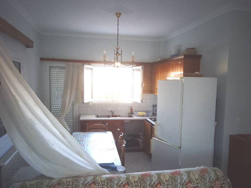 Apartment 60 sq.m. 1st floor in a building of 4 apartments, fully furnished (extra electric stove & refrigerator) consisting of an open plan living room-kitchen/dining room, a bedroom with wardrobe and a bathroom with a loft. It has a solar water heater, autonomous heating (oil) and two air conditioners. It is corner, bright East-West and faces North. It has three large balconies in the kitchen, living room and the bedroom. It is located in the center of the settlement, a short distance from the square and the church. For price, please contact Mr. Giannis at 6977033983.