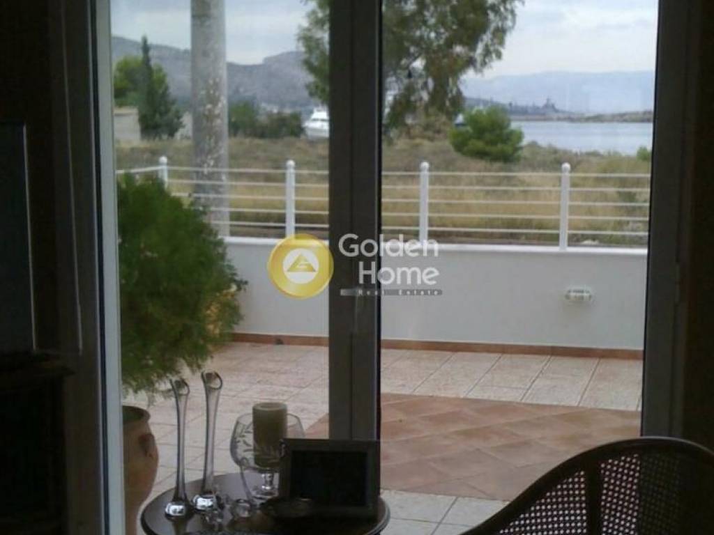 A unique beachfront detached house is for sale in Salamina, literally located right on the sea, on a prime 500 sq.m. plot. The property has a total surface of 140 sq.m., is arranged on a single ground-floor level, and combines high-quality construction with comfort and functionality, making it ideal both as a permanent residence and as a holiday home. It features a particularly spacious and bright living room with a fireplace, a large kitchen fitted with top-quality cabinets and refined finishes, three comfortable bedrooms, a large bathroom, and an additional WC. Aluminum window frames with electric shutters, an electric garage door, air conditioning, and autonomous heating ensure a high level of comfort and security. The beautifully landscaped garden includes a built-in barbecue and an independent garden house with a room and WC, ideal for guest accommodation or auxiliary use. Large verandas offer unobstructed sea views, creating a truly exceptional living environment. The property was built in 2009, has energy efficiency class A, tiled floors, frontage, and allows pets. A significant investment advantage is the remaining building allowance of approximately 300 sq.m., offering excellent potential for extension or further development.