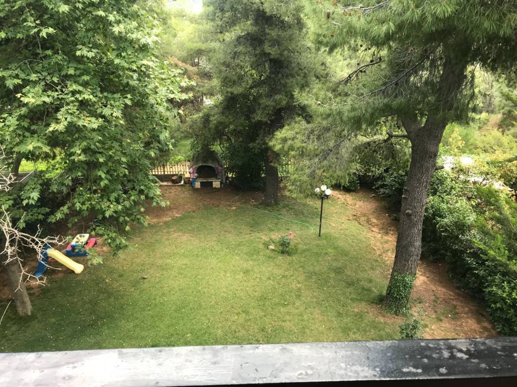 Dionysos Aeolida, bright, penthouse, 1nd floor maisonette, 203 sq.m. on two levels: apartment 137 sqm with attic 66 sqm, built in 1982, on a plot of 840 sqm consists of: Large functional reception area, with comfortable living room and direct access to a large spacious, balcony kitchen and direct access to terrace, 1 guest wc. To the left of the main reception and kitchen area, an internal door separates the private areas and a small corridor, leads us to 3 d (2 + 1 master) and a full bathroom. Internal wooden staircase leads to the upper level, attic, 66 sqm which can be fully autonomous as it has an independent entrance from the staircase. Includes a 2 bedroom living room, 1 full bathroom and a kitchenette. The space has a special investment with wood as well as an energy fireplace with provision for coverage of the entire mezzanine. Autonomy, heating with oil, aluminum frames, floors, wood and tile, 2 fireplaces each energy, communal garden, provision for elevator, one parking space. It is located in a nice place, quiet, comfortable access. Energy class D