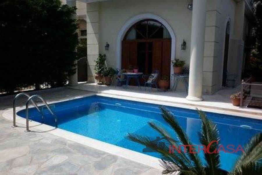 Luxurious villa, 303 m² in the center of Vouliagmeni, built in 2008, with very expensive inner decoration, plot 500sq.m, 5' from the beach walking distance, swimming pool, bbq, solar water heater, independent floor heating on every floor, central a/c, alarm system, satellite tv, garden full of fruit trees, The villa has 4 levels and elevator.The basement has 2 parking places, playroom with kitchen, w/c, laundry room The ground floor has salon with fireplace, dinning room, living room with fireplace, kitchen in a higher level.The 1st floor has 3 bedrooms, 1 master bedroom, dressing room.The 2nd floor is an attic with w.c. and big balcony.