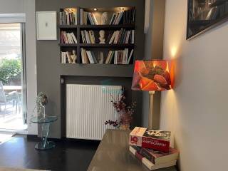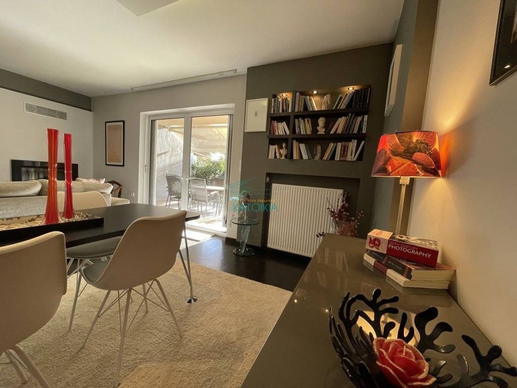 HALANDRI, Apartment 110 sq.m., painted, 1 level, ground floor, luxurious, for investment, at residential area, year of construction 2006, n/a, 3 b/r, living room, fireplace, bathroom, 1 WC, kitchen, double-sided, front facing, bright, corner, heating autonomous, solar panel, natural gas, boiler, air condition, with energy class C, with floor type n/a, with n/a joinery, double glass pane, double glazing, awnings, disabled access, door tv, security door, alarm, pets allowed, garden, storage room, closed garage, code 58437