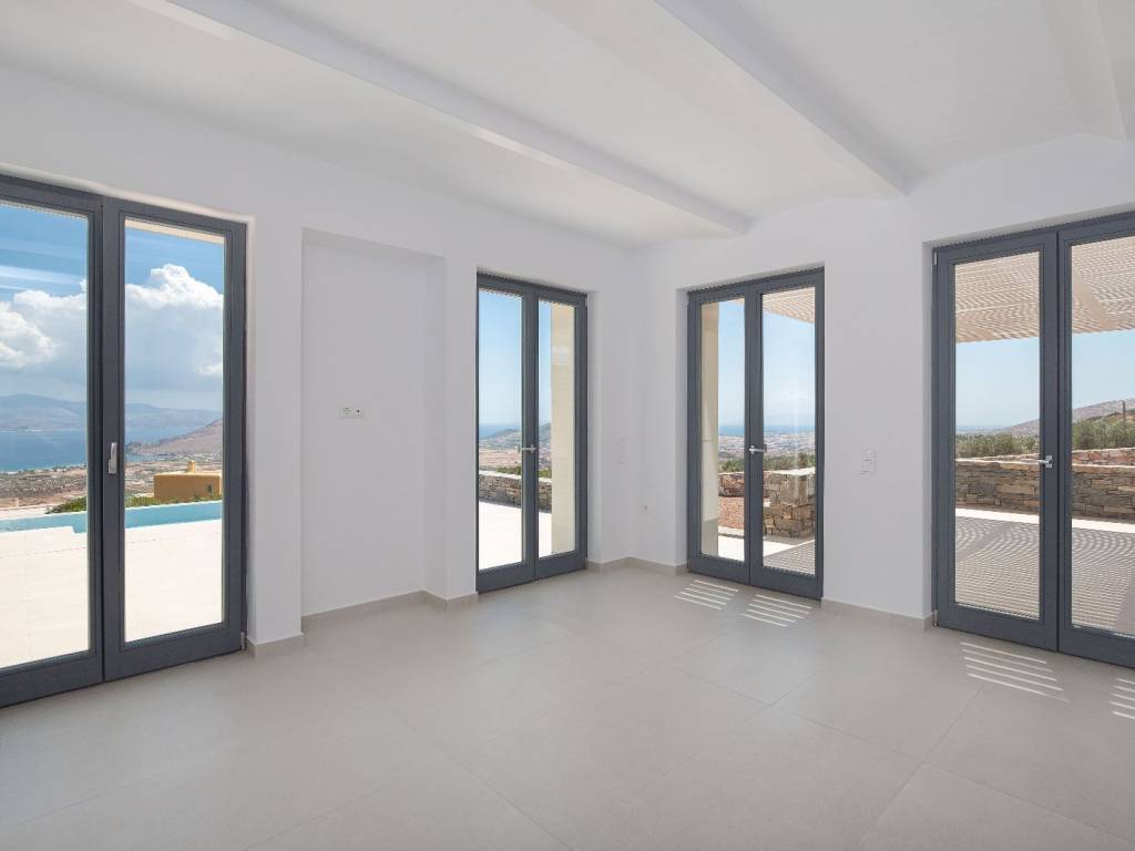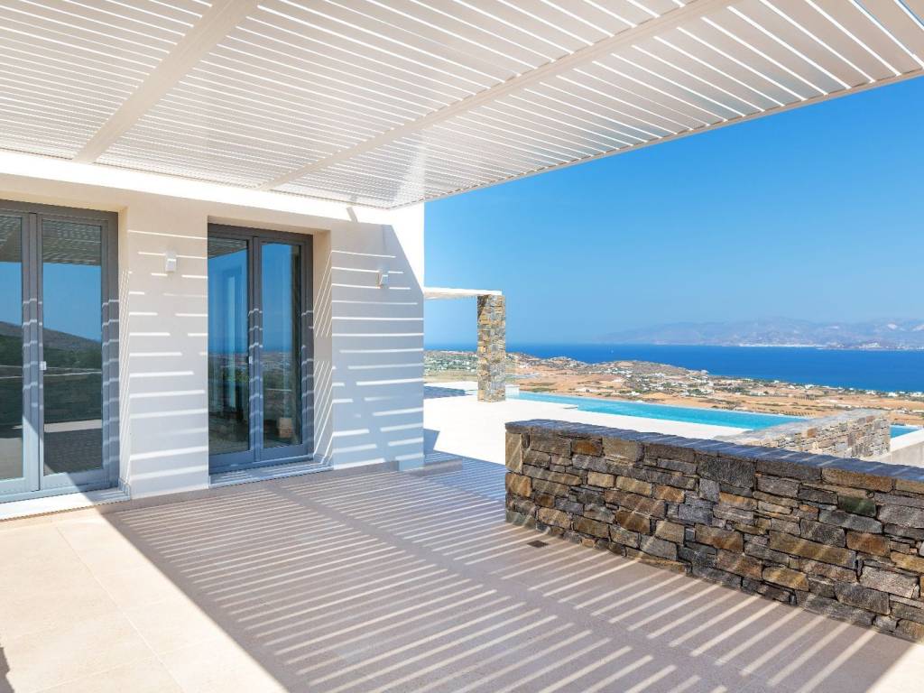 Πολυτελής νεόδμητη βίλα,χαμηλής ενεργειακής κατανάλωσης (Α+) στην Πάρο. Η εξαιρετική αυτή βίλα με νότιο προσανατολισμό,στην κορυφή ενός λόφου,με πανοραμική θέα σε Μύκονο, Νάξο και Ιο, είναι μια πιστοποιημένη παθητική κατοικία (Α++) από ανεξάρτητο οργανισμό, ανοίγοντας νέους ορίζοντες στην δόμηση σύγχρονων κατοικιών στην Πάρο που σέβονται το περιβάλλον και εξοικονομούν ενέργεια. Η κατοικία είναι πέντε λεπτά απο την κοσμοπολίτικη Νάουσα, έχει σχεδιαστεί, κατασκευαστεί και εξοπλιστεί με την κατάλληλη υποδομή ώστε να προσφέρει μια άνετη και πολυτελή διαμονή, με παθητική διαχείριση της ενέργειας, διατηρώντας σταθερή εσωτερική θερμοκρασία όλο τον χρόνο, ανεξαρτήτως καιρικών συνθηκών! Σε συνδυασμό με το όμορφο περιβάλλον, μεγάλο κήπο και την πανοραμική θέα προς την θάλασσα, τη Νάξο και τα περιβάλλοντα νησιά, αποτελεί μια εξαιρετική επένδυση με ελάχιστο ενεργειακό αποτύπωμα. Γιατί ένα παθητικό κτίριο ξεχωρίζει… Στο παθητικό κτίριο η εσωτερική θερμική άνεση εξασφαλίζεται αποκλειστικά προθέρμανση ή πρόψυξη της ποσότητας του νωπού αέρα. Προσφέρει ταυτόχρονα υψηλή ενεργειακή απόδοση, άνεση και οικονομία, είναι ταυτόχρονα φιλικό προς το περιβάλλον. Ανεξάρτητα από το κλίμα ή την περιοχή ένα παθητικό κτίριο διατηρεί όλο τον χρόνο μια άνετη και ευχάριστη θερμοκρασία με ελάχιστες ενεργειακές απαιτήσεις. Θερμαίνεται παθητικά, δηλαδή κάνει αποτελεσματική χρήση του ήλιου, των εσωτερικών πηγών θερμότητας και της ανάκτησης θερμότητας, έτσι ώστε τα συμβατικά συστήματα θέρμανσης να μην είναι απαραίτητα, ακόμα και τις πιο κρύες ημέρες του χειμώνα. Το καλοκαίρι χρησιμοποιεί παθητικές τεχνικές ψύξης, σωστή σκίαση, νυκτερινό φυσικό αερισμό, ώστε να διατηρείται δροσερό. Ο προσεκτικός σχεδιασμός και τα εξαιρετικής ποιότητας και υψηλής τεχνολογίας υλικά εγγυώνται σταθερές ευχάριστες θερμοκρασίες για τους ενοίκους. Στη συγκεκριμένη κατοικία δαπανάται 90% λιγότερη ενέργεια για θέρμανση και ψύξη έναντι των συμβατικών κτιρίων, εξασφαλίζοντας ενεργειακή κλάση Α+ και κατανάλωση ενέργειας που δεν θα ξεπερνά για δωδεκάμηνη λειτουργία τα 300€ ετησίως. Αρχιτεκτονικός Σχεδιασμός Λόγω της κλίσης του εδάφους, διαβαθμίζεται σε δύο βασικά επίπεδα, συνολικής επιφάνειας 221 τ.μ., με ενδιάμεσες μικρές εσωτερικές σκάλες, εξασφαλίζοντας σε όλους τους κύριους χώρους άπλετο φυσικό φως. Στο ανώτερο επίπεδο επιφάνειας 145 τ.μ. κυριαρχεί ένα ευρύχωρο φιλόξενο σαλόνι με πανοραμική θέα στην θάλασσα, προσφέροντας μια μοναδική ατμόσφαιρα ηρεμίας και ιδιωτικότητας, ενώ η φωτεινή κουζίνα με μεγάλο παράθυρο είναι ελαφρώς αναβαθμισμένη από τον υπόλοιπο χώρο με πλήρη εξοπλισμό. Δύο άνετα υπνοδωμάτια το ένα master με μεγάλο μπάνιο en suite και δύο μπάνια με θέα στην θάλασσα συμπληρώνουν το επίπεδο. Στο κατώτερο επίπεδο επιφάνειας 75 τ.μ. δύο επιπλέον υπνοδωμάτια το ένα master και δύο μπάνια, προσφέρουν ιδιωτικότητα και άμεση πρόσβαση στην εντυπωσιακή βεράντα που καταλήγει στην μεγάλη πισίνα με υπερχείλιση. Στο ίδιο επίπεδο βρίσκεται το κέντρο διαχείρισης της παθητικής κατοικίας, σε έναν ευρύχωρο βοηθητικό χώρο. Απολαύστε το νησί αμφιθεατρικά Οι εξωτερικοί χώροι, σχεδιασμένοι ώστε να προστατεύονται από τον αέρα, είναι εξίσου γοητευτικοί. Η βίλλα περιβάλλεται από άνετες βεράντες 165 τ.μ. και έναν ιδιωτικό κήπο 1.292 τ.μ. όπου μπορεί να ποτίζεται απο γεώτρηση. Κυρίαρχο στοιχείο εξωτερικά ε