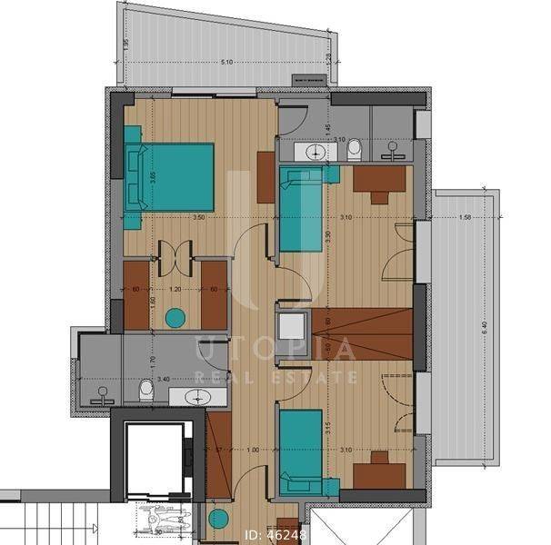 Iraklio (Attica - Northern Suburbs) - Floor Apartment 140sqm bedrooms 3, master bedroom, levels 1, 2nd, newly built, year built 2026, energy class A++, living room, kitchen, 2 bathrooms, heating type: individual unit (natural gas), air condition, parking open space+covered, quiet, dual aspect apartment, luminous, corner, park view, frontage, electric roller shutters, storage space, solar heater, boiler, external thermal insulation, fireplace, balconies, large balconies, balcony 46sqm, elevator, thermal shut-off frames, double glazed windows, wood & tile floors, three phase electricity, night electricity discount rate, secure door, alarm, surveillance cameras, video doorbell, luxurious, under floor heating, smart home, ev charger, satellite, internet, residential zone.