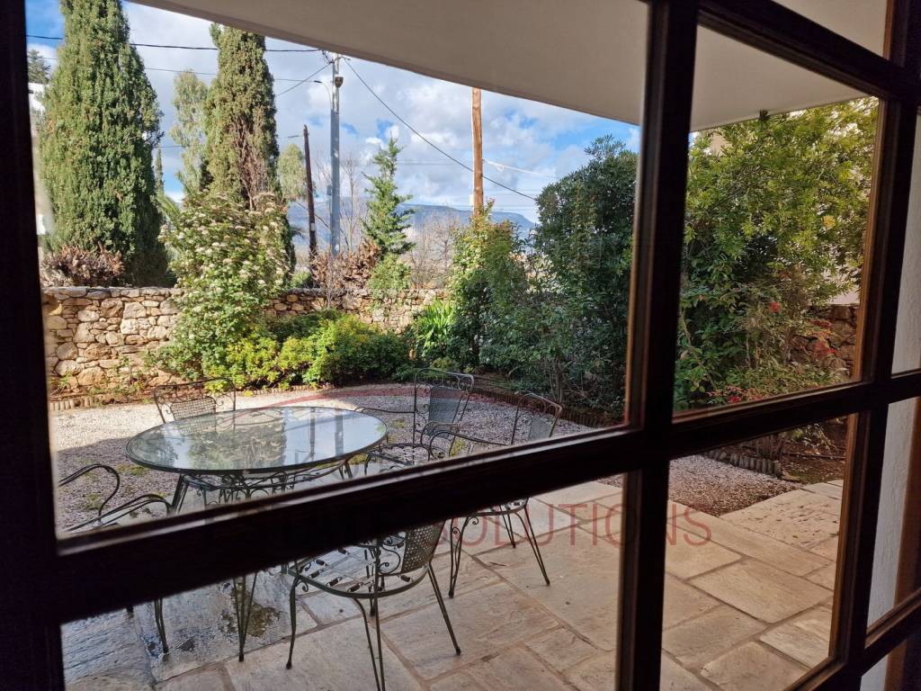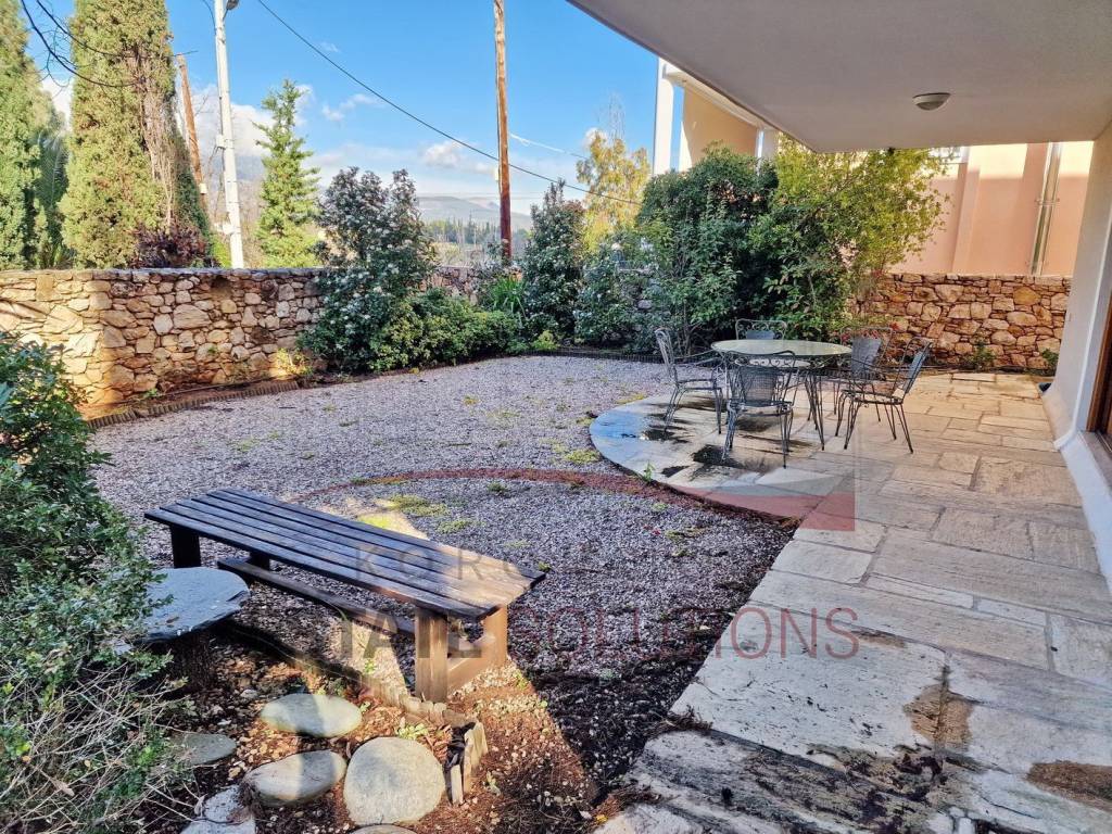 Ground floor duplex apartment in a beautiful neighborhood, with unobstructed views of Mount Parnitha. It is a careful construction by a private individual, for the purpose of owner-occupancy. It has a comfortable living-dining room with an open plan kitchen and a very large successive window that gives light, a view and direct access to the garden which is available for exclusive use, 3 spacious bedrooms with wardrobes, large offices and a dressing room, bathroom and wc, heating with an oil boiler as well as a very energy-efficient wood stove in the living room, which can be used optionally, since the performance of the bodies is adequate. It also has air conditioners, an alarm system, wooden frames with double glazing, wooden floors in bedrooms, very bright spaces and comfortable layout. It is immediately available for rent without utilities.