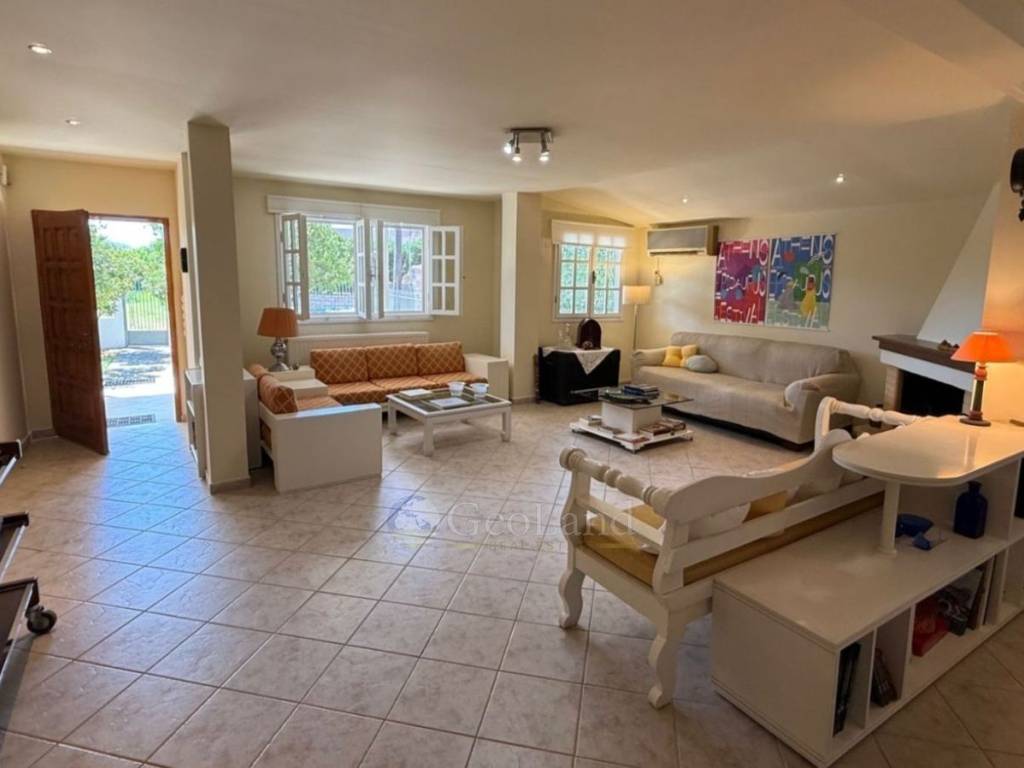 The house opens onto a spacious and bright living room with a fireplace, where comfort and warmth create a welcoming environment for family moments or moments of relaxation. The fully equipped and functional kitchen offers comfort for everyday use as well as for larger gatherings, while the adjacent dining room is a separate space for meals and social moments. The house is ready to welcome its new owners, fully furnished and equipped with everything you need, from air conditioning in all rooms and built-in wardrobes to wooden window frames and double glazing, combining comfort, brightness, and practicality in every corner.