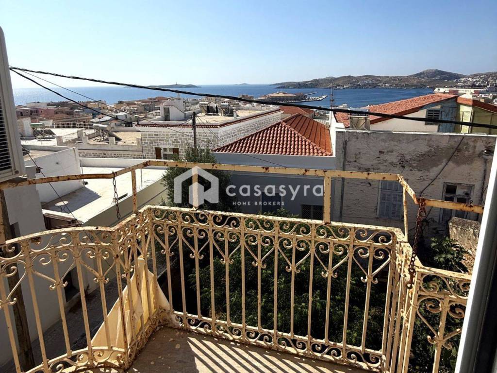 FOR SALE three-storey building with a total area of 363.71 sq.m. in the "Metamorfosis" district in Ermoupolis, Syros. The building consists of two buildings, the first of which is a three-level neoclassical building and the other a modern two-storey detached house built in 1973. The neoclassical building consists of three separate floor apartments with separate entrances that are functionally united. The ground floor consists of a house of 80.23 sq.m. containing a kitchen, living room, bedroom and bathroom. On the first floor there is a house of 91.15 sq.m. consisting of a kitchen, living room, dining room, two bedrooms and a bathroom while on the second floor of 80.23 sq.m. there are the kitchen, the dining room, two bedrooms and a bathroom. In the second building there are two floor apartments with the ground floor being 39.02 sq.m. and consisting of a kitchen, living room, bedroom and bathroom while the floor with a total area of 73.08 sq.m. contains a kitchen-dining room, two bedrooms and a bathroom. It is located in a tranquil but central location just 100m from the main Miaoulis Square, it has large windows and balconies from which one can enjoy the open view while also having easy access to the terrace that offers a view of the port of Ermoupolis. With minimal repairs, one can acquire a neoclassical detached house in the city center ideal for own residency but can also be combined for investment purposes due to its location and layout.