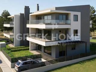 Gerakas, Gargitos 1 - Apartment 108sqm bedrooms 3, 2nd, under construction, constructionstage concrete, year built 2026, energy class A, living room, hall, kitchen, bathroom, wc, heating type: autonomous (heat pump), air condition, parking covered, quiet, luminous, corner, drop ceiling, electric roller shutters, storage space, external thermal insulation, fireplace, balconies, elevator, thermal shut-off frames, double glazed windows, door screen, ceramic tiles floors, secure door, alarm, surveillance cameras, video doorbell, luxurious, under floor heating, smart home, ev charger, satellite, internet.