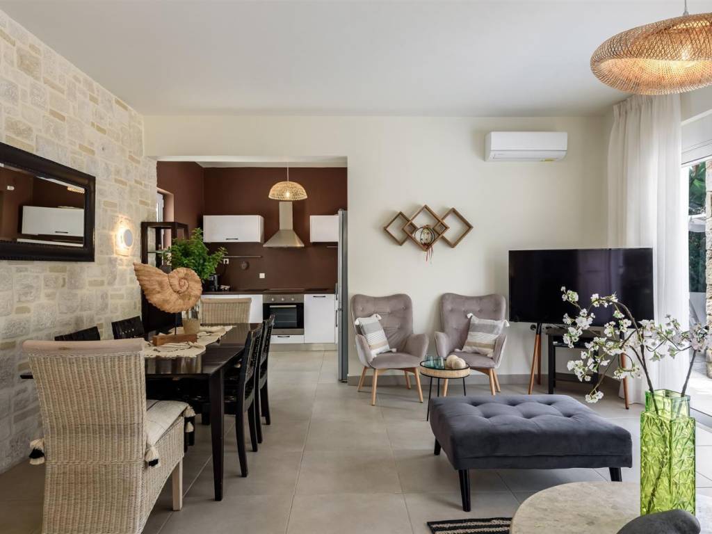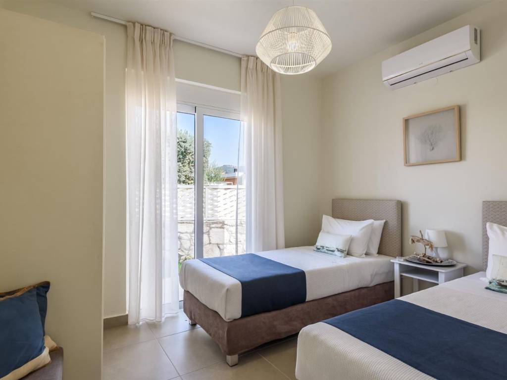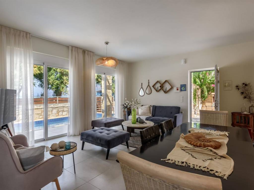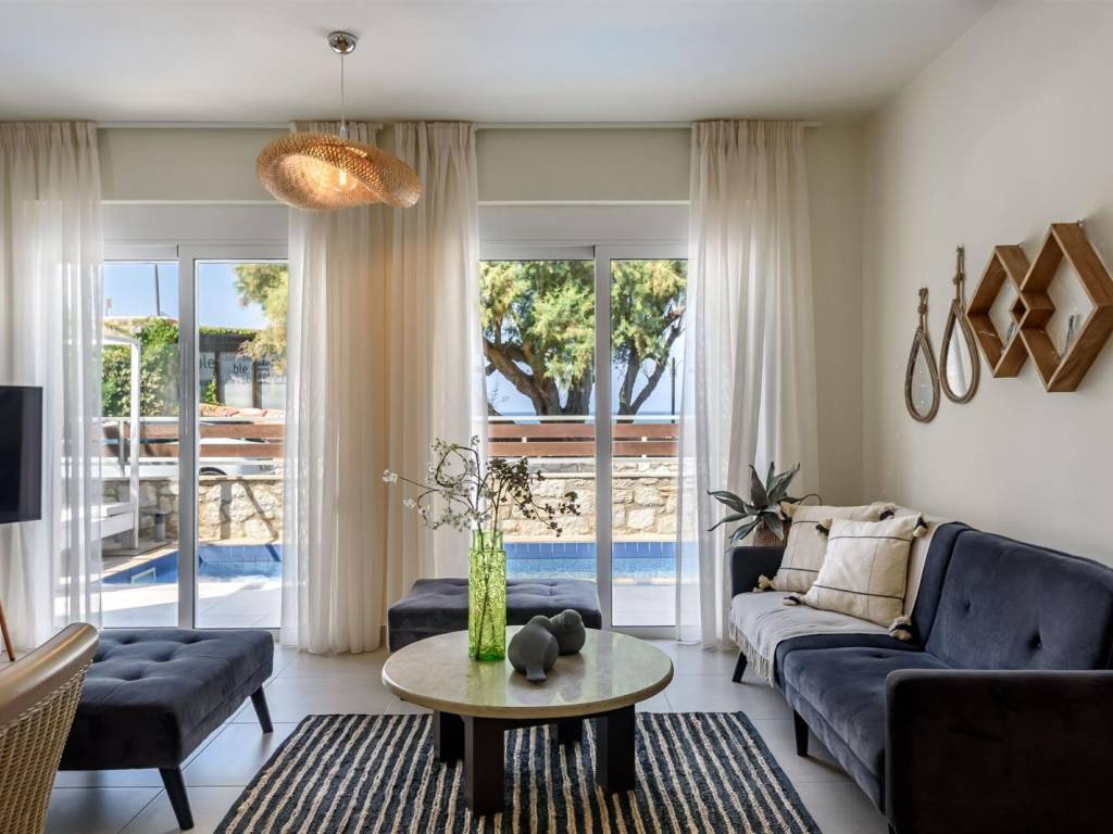 In a seaside residential complex in Nopigia, an impressive 100 sq.m. villa is offered for sale, built on a 226 sq.m. plot, combining comfort, luxury, and stunning sea views. The villa features three spacious and bright bedrooms, ideal for a family or guests, as well as two modern, fully equipped bathrooms designed with high-quality finishes and aesthetic appeal. The large sunlit terrace offers uninterrupted sea views and serves as the perfect space for relaxation or entertaining friends and family, while the private pool ensures complete privacy and enjoyment throughout the day. The villa comes fully furnished with elegant, high-quality furniture, ready for immediate use, blending contemporary design with practicality. This residence offers the perfect combination of luxury, comfort, and natural beauty, making it ideal for both permanent living and vacation use. It is a unique opportunity to own a villa where everyday life meets the tranquility and elegance of seaside living.