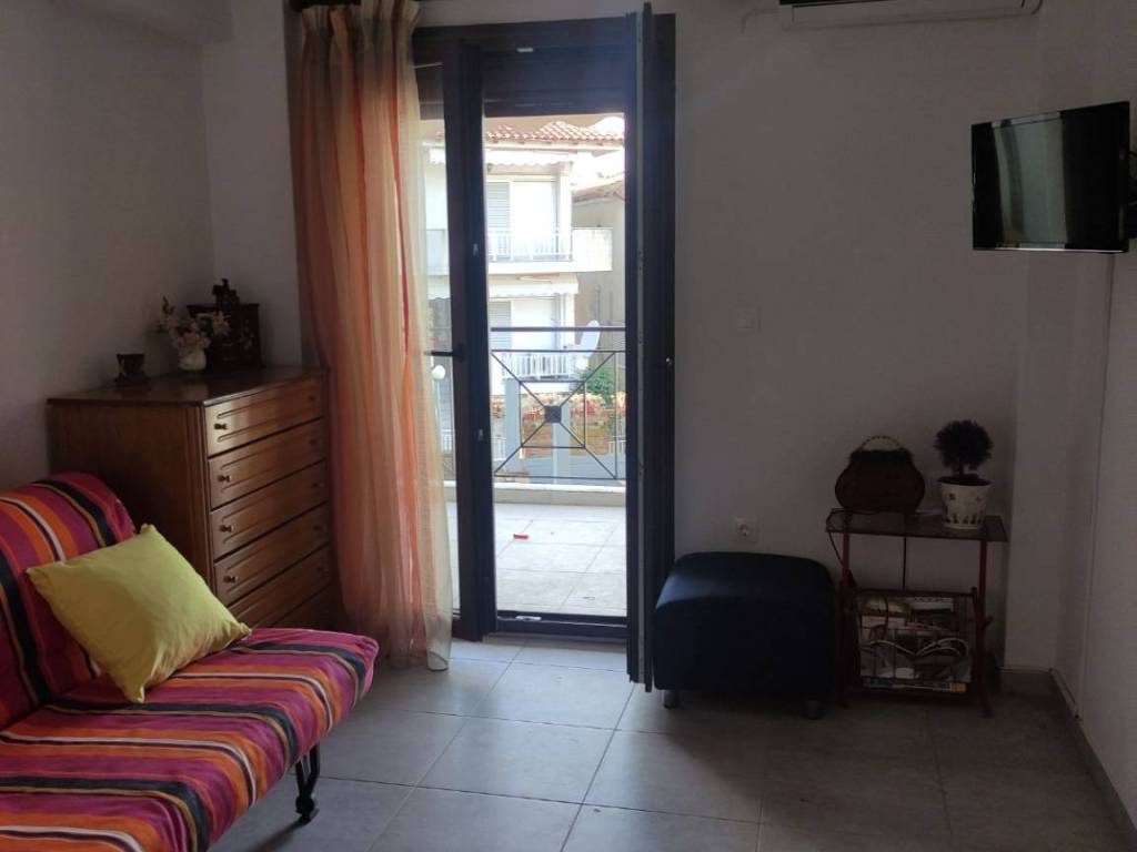FOR SALE Elevated ground floor studio apartment with a total area of 42.00 sq.m. It consists of 1 bedroom, living room with kitchen, and bathroom. Built in 1991 and fully renovated in 2018. The property features aluminum window frames, tiled floors, built-in wardrobe, shared garden, air conditioning, and a balcony. Price: €120,000 It is located close to the main road and only 350 meters from the sea. Ideal for a holiday home or investment use.