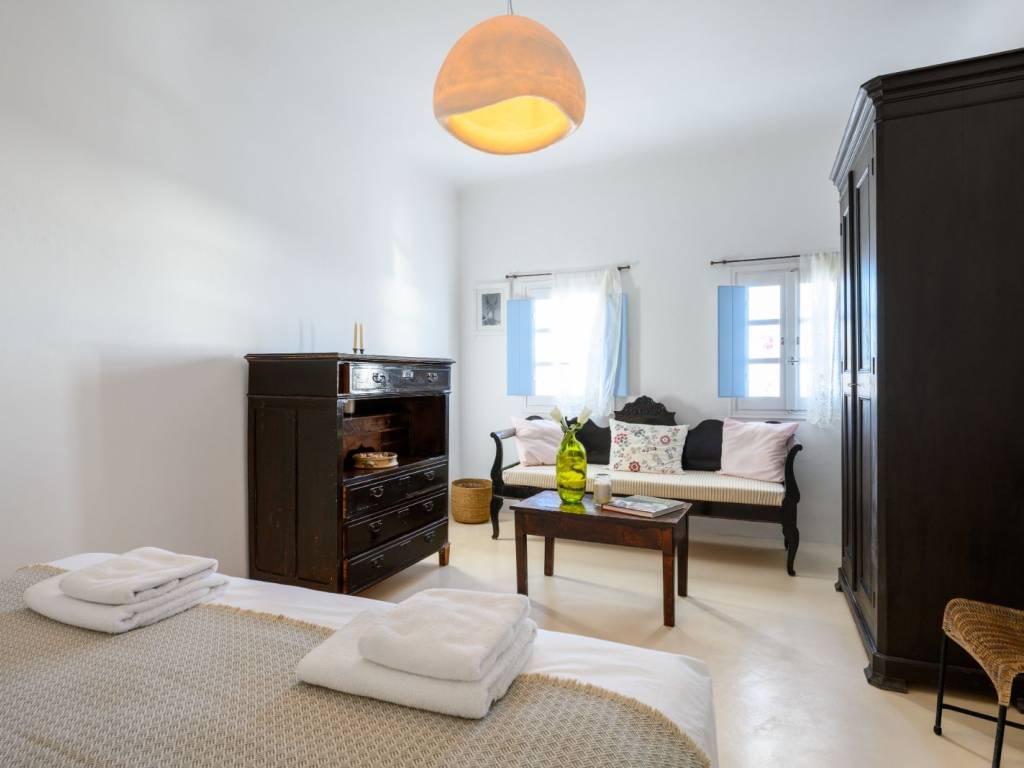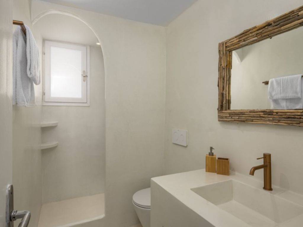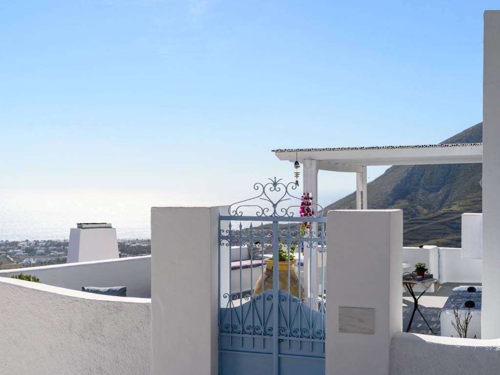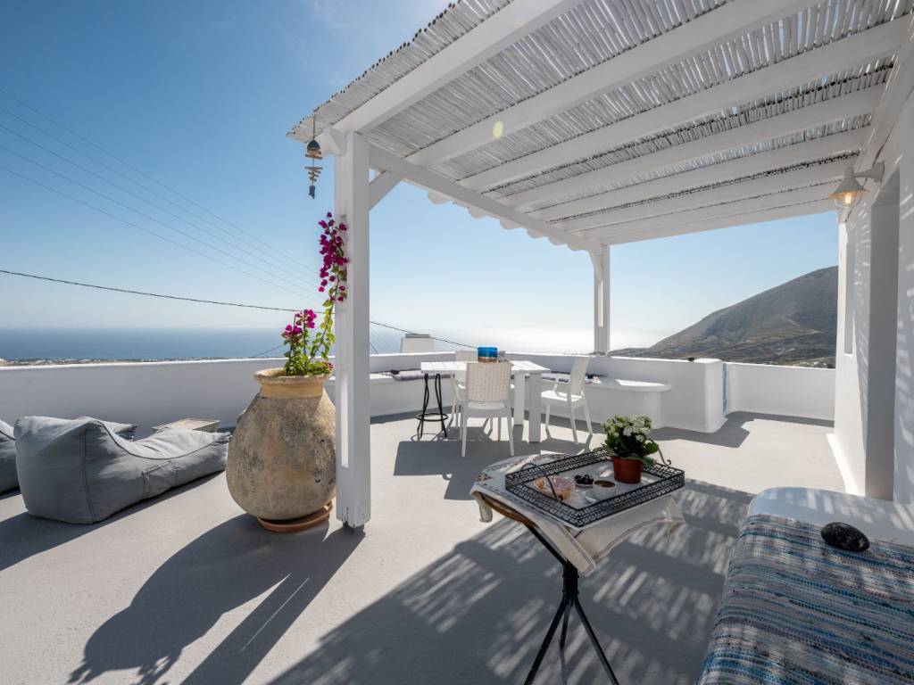 Luxury Traditional Detached House with Panoramic Views – Exo Gonia, Santorini A fully independent 60 sq.m. residence is available for long-term lease, offering a rare blend of Santorinian heritage and modern luxury. The property underwent a total renovation in 2024 and comes fully equipped with brand-new appliances and furnishings, providing a premium, move-in-ready home ideal for a couple. Key Features: Total 2024 Renovation: Every aspect of the house—including the bathroom, kitchen, and bedroom—as well as all appliances and furniture, were fully renewed in 2024. Interior Aesthetics: A spacious home featuring authentic antique furniture (over 100 years old) elegantly paired with modern appliances, lighting, and decor. It includes a large bedroom with a king-size bed (1.80m), a living room, a dining area, a separate kitchen, and a modern bathroom. Gourmet Kitchen: A separate, fully equipped space featuring an oven, refrigerator, toaster, and a reverse osmosis system for high-quality drinking water. Luxury Bathroom: Finished with high-end materials, featuring a washing machine and a solar water heater. Home Office: A fully functional workspace, perfectly suited for digital nomads or remote professionals. Outdoor Living: The 70 sq.m. private courtyard is a true sanctuary. It offers complete autonomy and breathtaking panoramic views of the Aegean Sea, the village, and the island of Anafi. The outdoor area is furnished with built-in benches, bean bag loungers, and a sitting area—perfect for enjoying the majestic sunrise. Lease Terms: Duration: Long-term lease (1 to 3 years). Parking: Free public parking available within 80 meters. Policy: Strictly for private residential use (no commercial use or subletting).