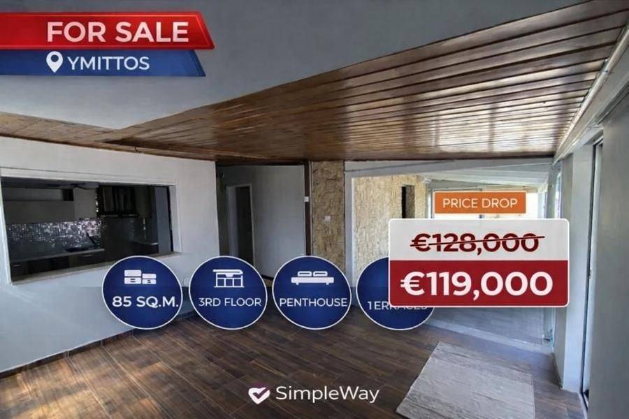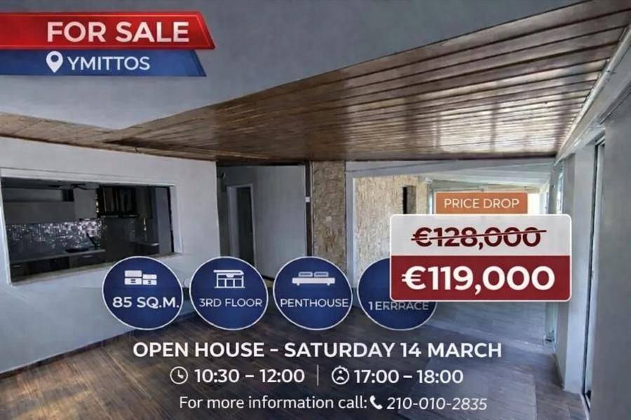 Ymittos, Centre - Apartment 85sqm bedrooms 2, levels 1, 3rd, year built 2007, energy class C, living room, kitchen, bathroom, wc, heating type: autonomous (electricity), air condition, frontage, fireplace, balconies, large balconies, tents, double glazed windows, residential zone.