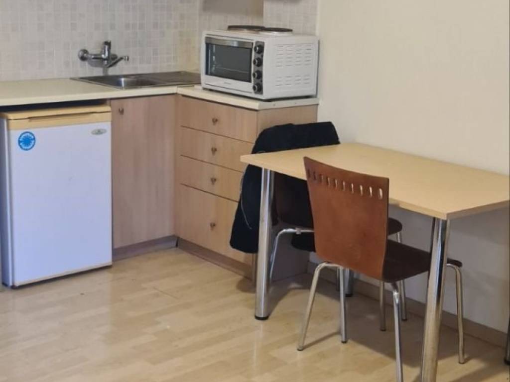 A studio apartment is available for rent on the 3rd floor of a building in the city center of Heraklion, Crete, with a total area of 27 sq.m. The property was built in 1970 and renovated in 2017, and it is in good condition. It consists of one open-plan bedroom area, a kitchen, and a bathroom. The apartment features autonomous electric heating, air conditioning, and a boiler. The window frames are aluminum with double glazing, the floors are tiled, and the energy efficiency rating is C. The property is fully furnished, front-facing, bright, and listed/preserved, with a north-east orientation and open views. It is located in a prime area, close to public transportation, parks, churches, supermarkets, shopping centers, local markets, restaurants, and entertainment venues. Additional features include window screens, electrical appliances, a veranda, and a quiet neighborhood. It is ideal for students. Rental price: €400 The indicated location is approximate. For more information or to arrange a viewing, please contact: KOSMOS REAL ESTATE Property Manager: Orestis – 6947759954 Email: orestis@kosmosrealestate.gr