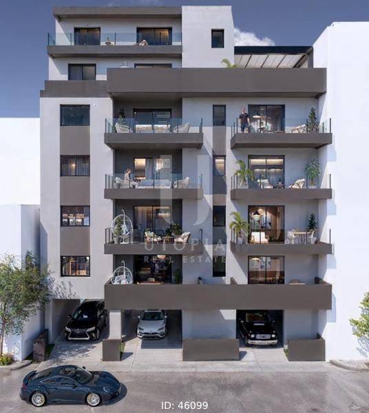Kallithea (Attica - Southern Suburbs), Harokopou - Floor Apartment 45sqm plot 200sqm, bedrooms 2, levels 1, 6th, under construction, year built 2025, energy class A, living room, hall, kitchen, 2 bathrooms, heating type: autonomous (fan coil), air condition, quiet, dual aspect apartment, luminous, unobstructed view, frontage, painted, electric roller shutters, solar heater, external thermal insulation, balconies, large balconies, elevator, private terrace, terrace 40sqm, thermal shut-off frames, double glazed windows, door screen, wood & tile floors, three phase electricity, night electricity discount rate, secure door, alarm, video doorbell, luxurious, pets allowed, residential zone, south-eastern orientation, access from asphalt.