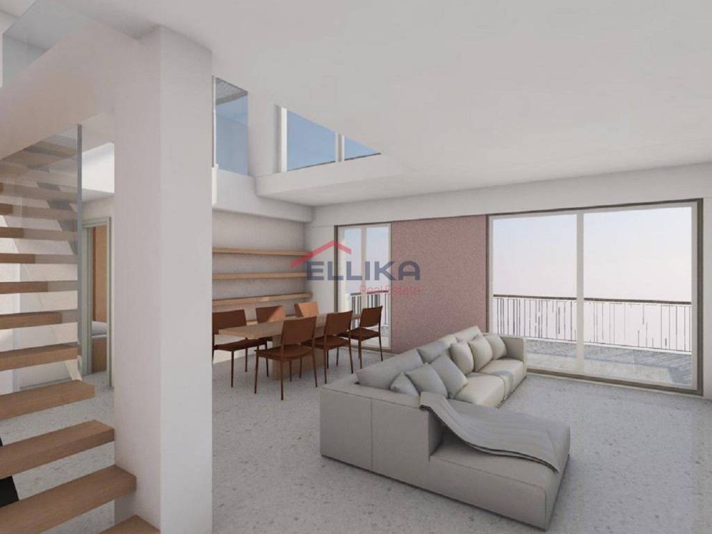 NEA SMYRNI (ΑΝΟ) An attractive 127 sq.m. maisonette arranged on two levels, located on the 5th floor of a modern residential building under construction (year of completion 2026). Ideal for both owner-occupation and investment, it is set in a quiet residential area, close to shops, schools, and public transportation. The property features three spacious bedrooms, a bright living room with an energy-efficient fireplace, a kitchen, one bathroom, and one WC. It is dual-aspect, front-facing, and particularly bright, offering a comfortable veranda with open views. Heating is autonomous with natural gas, complemented by a solar water heater and pre-installation for air conditioning. The residence has an A energy efficiency rating and is built with high-quality materials, including tiled floors, aluminum window frames with double glazing, double-pane windows, and insect screens. The building is equipped with an elevator, video intercom, security door, and alarm system. Additional amenities include a storage room and an open parking space in the pilotis. Property Code: 105273 Price: €500,000