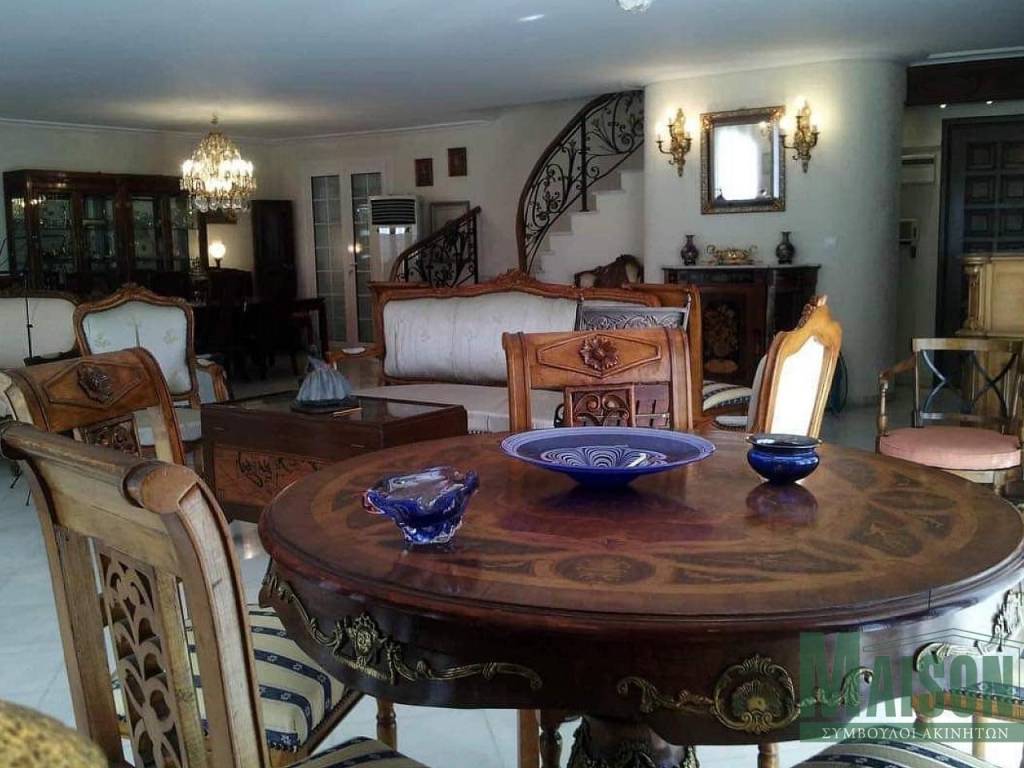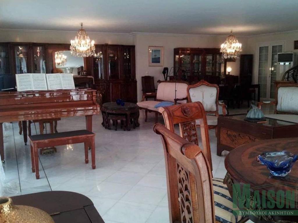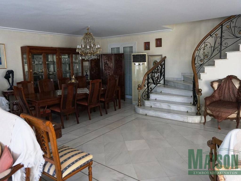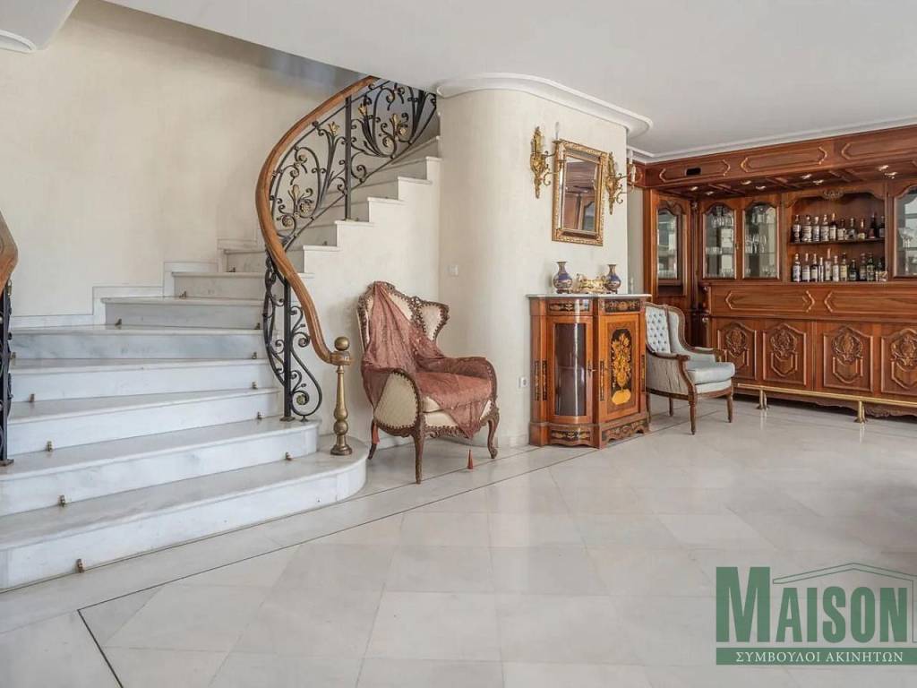 In Ano Glyfada, an exceptional maisonette with a total surface area of 286 sq.m. is offered for sale, built in 1986 and set on a plot of 800 sq.m., combining comfort, luxury, and stunning views of both the mountain and the sea. This bright, quiet, corner, and through-ventilated front-facing residence features large verandas, a garden, and a swimming pool, making it ideal for those seeking a high standard of living. It is also an excellent investment option, as its rental income offers a gross annual yield of 6%. The property is arranged on the 2nd and 3rd floors and is connected by a marble staircase and an elevator, while the attic is accessed via an internal wooden staircase. The first level, measuring 120 sq.m., consists of an impressive open-plan area that includes two living rooms, two dining areas, a fireplace, a built-in wooden bar, and a guest WC, offering excellent conditions for both everyday comfort and social gatherings. The second level, spanning 115 sq.m., features a living room with a fireplace, a fully equipped kitchen with built-in electrical appliances, a dining area, and two master bedrooms designed to provide absolute privacy and comfort. On the third level, the attic forms a distinctive space that includes a sitting area with a marble fireplace, a sleeping area, and a bathroom, making it ideal as an independent guest suite or a private relaxation area. Overall, the residence has been constructed with materials of exceptional quality and features parquet and marble flooring, double-glazed windows, a security door, an alarm system, awnings, and a storage room. The property also includes an elevator, pilotis parking, autonomous heating per floor, air conditioning, solar water heating, and three fireplaces, ensuring comfort and functionality throughout the year. The maisonette is offered fully furnished and represents a rare opportunity to acquire a high-specification residence in one of the most sought-after areas of Athens’ southern suburbs, combining luxurious living, privacy, and unobstructed views. For more information and to arrange a viewing, please contact us. Property ID: 19237, www.maison-estate.gr