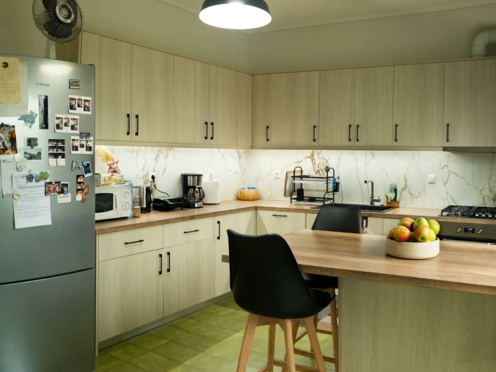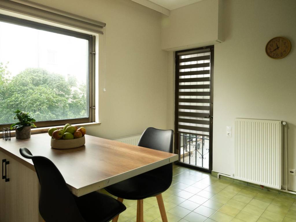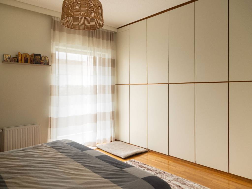 For sale: an exceptional and bright 116 sq.m. apartment, located on the 1st floor, in a very quiet and high-quality residential area, on a tree-lined street surrounded by greenery, offering a rare neighborhood feel. The apartment features two spacious bedrooms with parquet flooring, a large living room with fireplace pre-installation, a fully renovated modern kitchen, one bathroom and one WC, as well as numerous practical built-in wardrobes, providing ample storage space. The large balconies ensure abundant natural light and a direct connection with the surrounding greenery, creating an ideal environment for relaxation. Additional features include autonomous heating with a natural gas boiler, brand-new radiators, double-glazed aluminum windows, elevator, private parking space, and an independent 9 sq.m. storage room. The building was constructed in 1985, and the apartment is maintained in very good condition. An ideal choice for those seeking comfort, tranquility, and high quality of living, in a location that perfectly combines nature with everyday convenience. Photos of the property will be uploaded in the coming days.