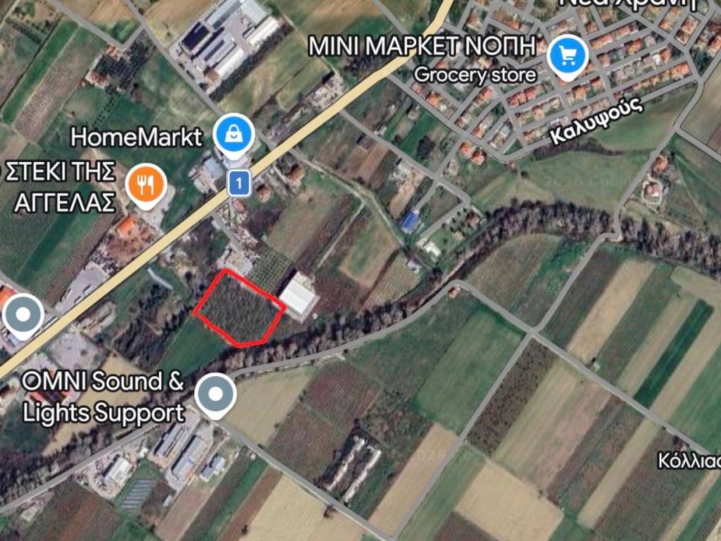Αγροτεμάχιο με καρυδιές, δική του πομόνα, σπιτάκι, αποθήκη και περίφραξη με τσιμέντο και σιδεροκολώνες. Άρτιο και οικοδομήσιμο.