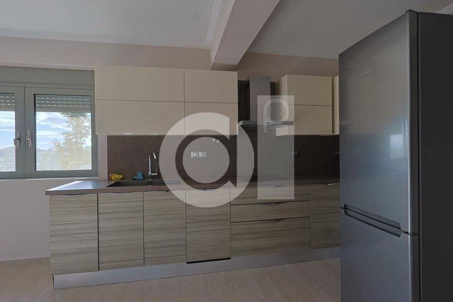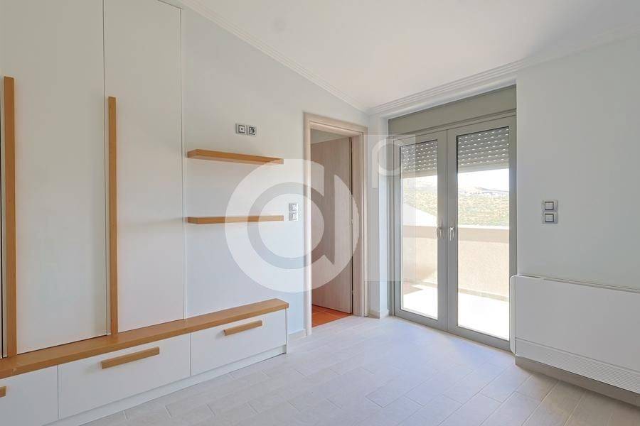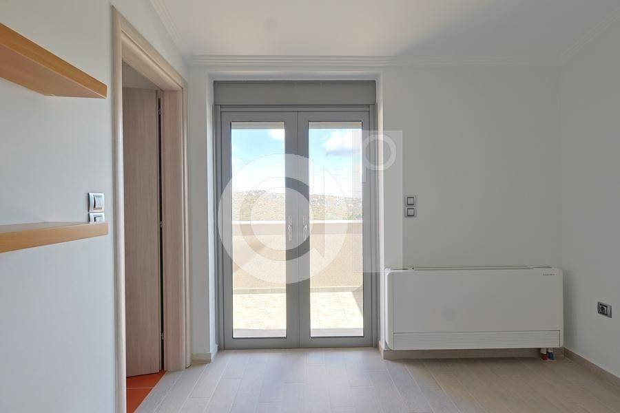 Pikermi, Ntrafi - Independent Maisonette 110sqm plot 1000sqm, electrical appliances furnished, bedrooms 2, levels 2, 1st - 2nd, excellent condition, year built 2018, energy class A, living room, kitchen, 2 bathrooms, heating type: autonomous (geothermal heating), air condition, quiet, dual aspect apartment, luminous, unobstructed view, frontage, painted, storage space, solar heater, fireplace, balconies, large balconies, garden, built in appliances, aluminum frames, double glazed windows, ceramic tiles floors, three phase electricity, secure door, luxurious, internal staircase, within city plan, residential zone, eastern orientation, access from asphalt.