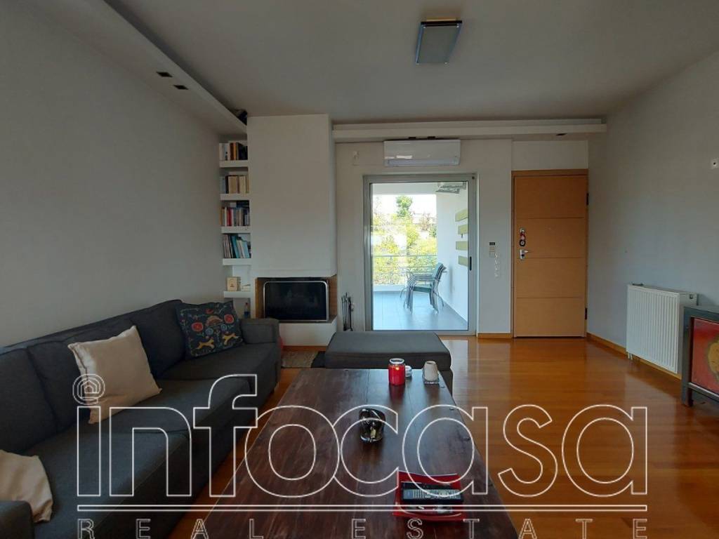 Pallini – Kantza: Luxury Duplex Apartment 145 sq.m. In a quiet and verdant neighborhood beneath the Kantza hill, a stunning two-level duplex apartment of 145 sq.m. is available for sale. Situated on the 2nd floor with an attic, this property was built in 2007 and stands out for its excellent condition, refined design, and superb orientation. On the first level, there is a spacious and bright living room with a fireplace, a functional open-plan kitchen fully equipped with high-end electrical appliances, one bedroom, and a bathroom. A beautifully crafted wooden staircase leads to the attic, where you will find two bedrooms, a bathroom, and a smaller room used as a dressing area. On the same level, there are multiple wardrobes, a separate laundry area for washing machine and dryer, and an indoor storage room offering additional organization space. The property features autonomous heating with oil, independent heating per level, security door, aluminum frames with double glazing, mosquito screens, awnings, alarm system, air conditioning, and wooden floors that add warmth and character to the space. It also includes a storage room and a closed garage of 15 sq.m. The apartment is front-facing, bright, airy, and cross-ventilated, offering unobstructed views of the sea and the mountains. It is a luxurious residence that perfectly combines comfort, functionality, and aesthetics. Located in a peaceful neighborhood that ensures quality living and tranquility, it is within walking distance from shops, public and private schools (such as Athens College and the German School of Athens), as well as sports and artistic activities for children. A truly ideal property for families or for anyone seeking a high-standard home with breathtaking views and all modern amenities. Price: 385.000€. Infocasa, contact phone: 6977217880, 2106233945, email: info@infocasa.gr, www.infocasa.gr
