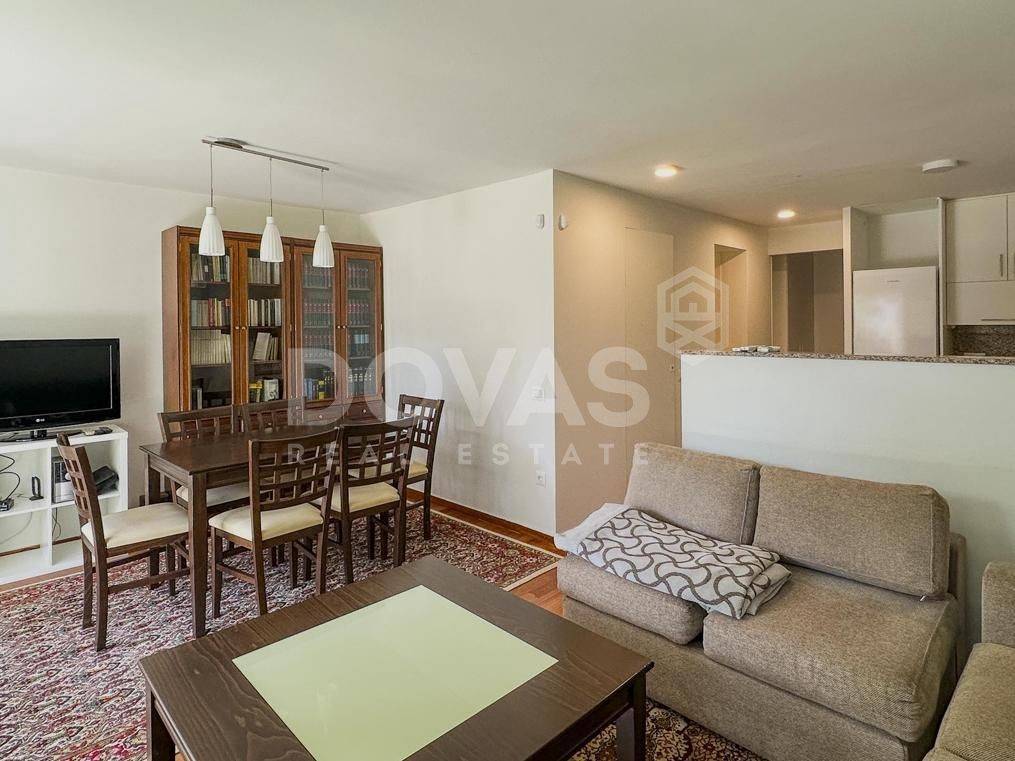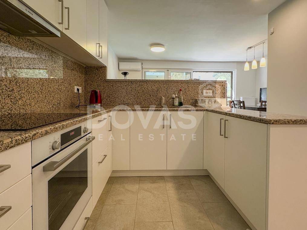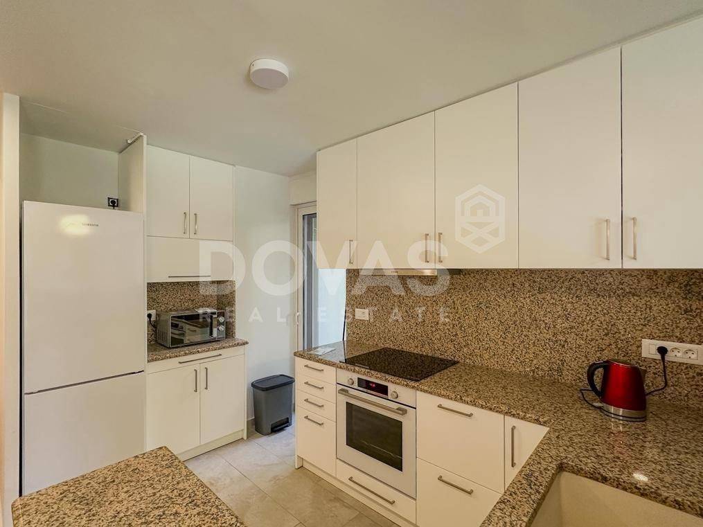 Kifissia - Apartment 75sqm bedrooms 2, levels 1, 1st, excellent condition, year built 1982, renovation year 2024, energy class E, living room, hall, kitchen, bathroom, wc, heating type: autonomous (natural gas), air condition, parking ground floor, quiet, luminous, frontage, painted, electric roller shutters, storage space, solar heater, balconies, elevator, garden, garden 200sqm, built in appliances, aluminum frames, double glazed windows, door screen, wood floors, three phase electricity, secure door, alarm, video doorbell, luxurious, satellite, laundry room, residential zone, access from asphalt, close to market (up to 500m).