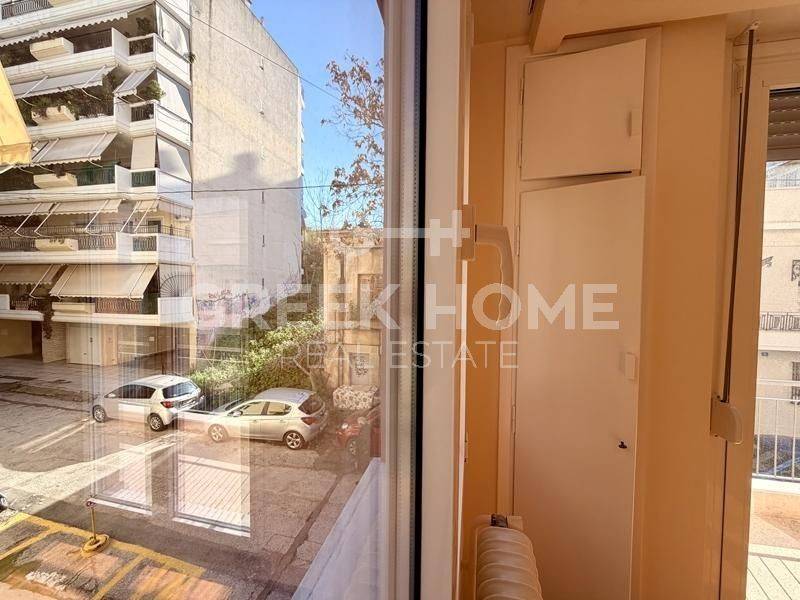 Kypseli - Apartment 97sqm bedrooms 2, 1st, excellent condition, year built 1968, renovation year 2025, energy class G, 2 living rooms, hall, kitchen, wc, heating type: central (natural gas), quiet, dual aspect apartment, luminous, corner, frontage, balconies, balcony 15sqm, elevator, loft storage, aluminum frames, wood & tile floors, separate kitchen, secure door, eastern orientation, close to bus stop (up to 200m), close to square (up to 200m), close to super market (up to 200m), close to entertainment (up to 200m), close to university/college (up to 1500m), close to market (up to 200m), close to sports facilities (up to 1000m).