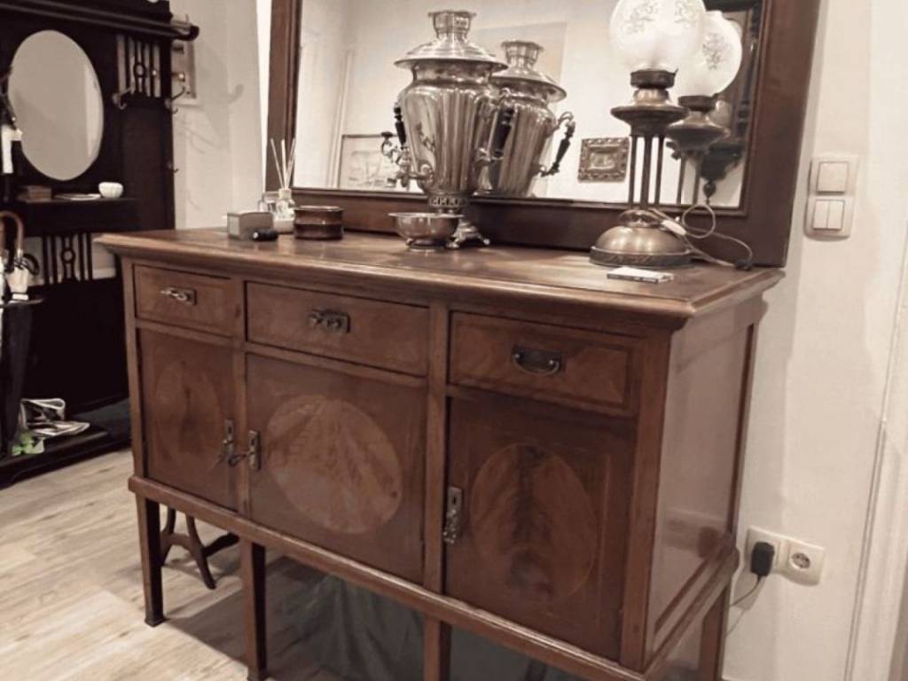 The spacious bedroom retains the charming character of its original 1967 construction while meeting contemporary energy standards with a class C rating. This delightful apartment can be furnished with quality pieces, including a kitchen setup, washing machine, and beds, offering a move-in-ready experience.