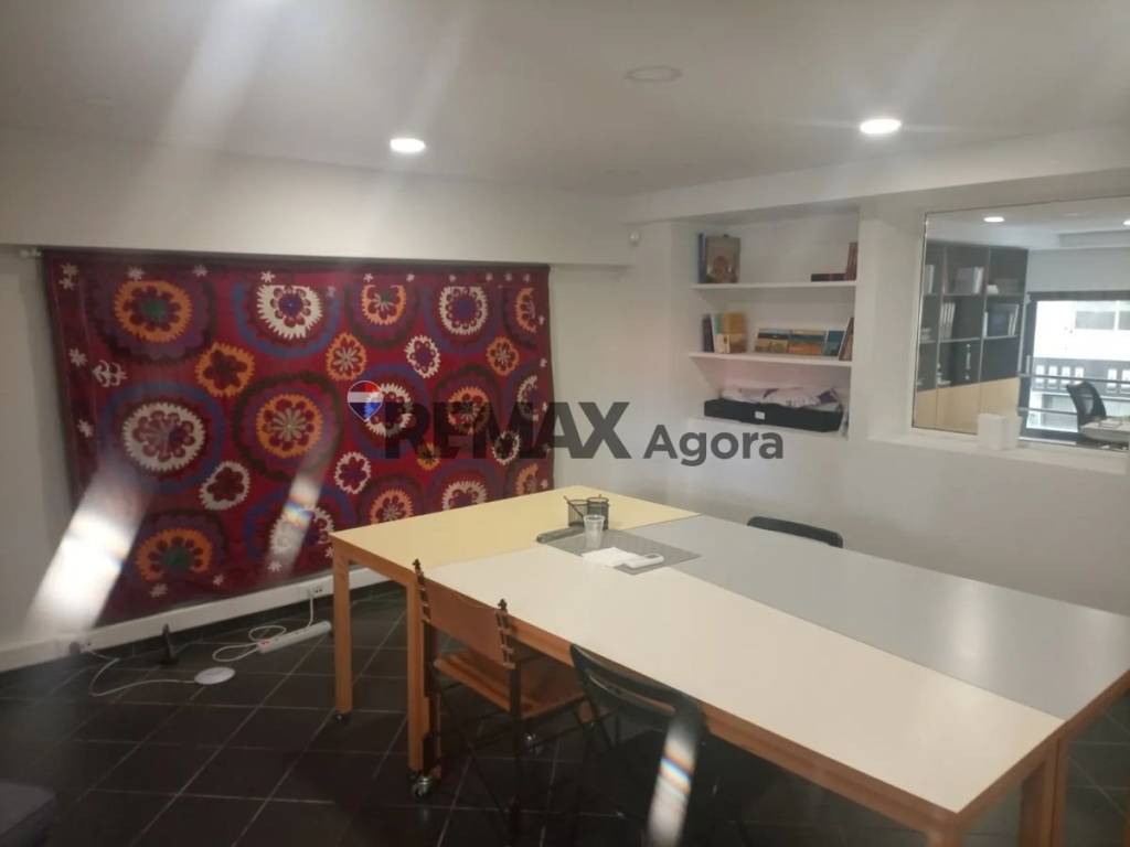 Ημιόροφος 87τ.μ., αποτελειται από 2 χωρους γραφειων, πληρως εξοπλισμένους, επιπλωμενους, με ανεξαρτητο κλιματισμο, ψευδοροφες, φωτισμους, πλαισια αλουμινιου EUROPA με διπλα κρυσταλλα, ξυλινα δαπεδα, πορτα κρυσταλλινη Securite κλπ. Υψος χωρου, χωρις τις ψευδοροφες, 2,50 μ. Η προσβαση στον χωρο πραγματοποιείται μεσω ξυλινης κλιμακος.
