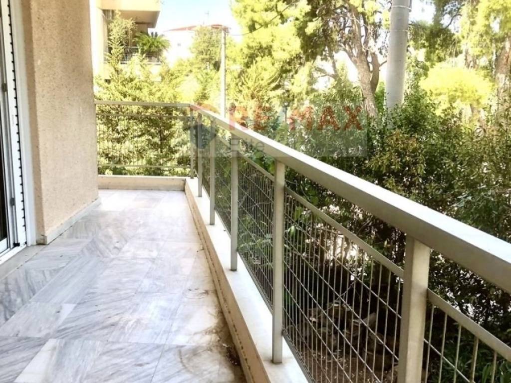 Maroussi Paradeisos (Equestrian Club). 1st floor corner and bright apartment for rent with verandas around the perimeter of the apartment and an area of 109 sq m. The apartment was built in 1978 and in 2023 the frames on the balcony doors and windows were replaced. It consists of a two-room living room (open space with kitchen) and dining room. It has 2 bedrooms with wardrobes and two bathrooms. There is central gas heating. New air conditioners have been installed in all rooms. It is offered with storage space in thebasement and pilotis parking space. It is located in the best spot of Paradisos behind the Maroussi Equestrian Club. Access to Kifissias Avenue in 10` and to the Chalandri market in 20` on foot. Attiki Odos (Kifissias Exit) in 1` by car. Rent €1000/month. (K65)
