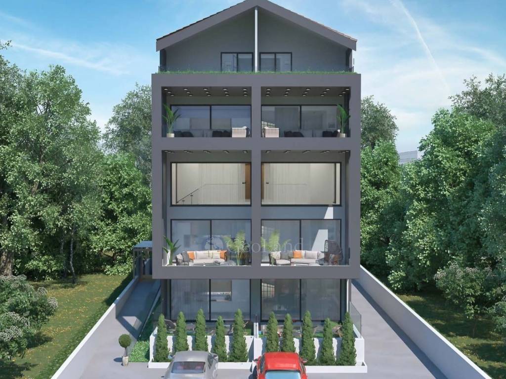 An elegant internal staircase leads to the second and highest level of the maisonette (4th floor), where the living areas are located. This is a single, bright space that includes the living room, dining room, and kitchen, creating a warm environment for family moments and social gatherings. On the same level, there is also a WC for the convenience of guests and tenants. The architecture of the floor culminates in the impressive, large terraces that extend the living space outward, offering unobstructed views and abundant natural light, ideal for enjoyable evenings or mornings.