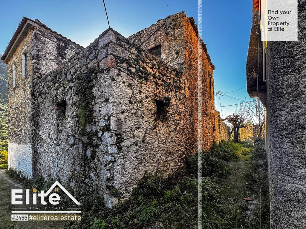 In a quiet and authentic part of the settlement of Sotirianika, in West Mani, a traditional stone house of pre-1955 is for sale, located in a plot of 125 m², within the boundaries of the pre-1923 settlement. From the first floor the residence enjoys open views of the natural landscape of the area, enhancing the sense of calm and privacy. The house preserves the architectural character of the area and is an excellent basis for restoration, ideal for the creation of a holiday home or a residence for tourist use. The plot is even and buildable by derogation and presents particular advantages of location, as it borders on three sides with a community road, offering natural lighting and a sense of openness - characteristics not easily found in traditional settlements. Access is through a picturesque community alley, an element that enhances the authenticity and traditional character of the residence. Due to the morphology of the road, there is no possibility of creating a private parking space within the plot, while parking is serviced nearby. In order to view the property, it is necessary to indicate the police ID and the A.F.M. according to Law 4072/11-4-2012 Official Gazette 86 A. Facilities, equipment, location. The house is developed on two levels and requires complete restoration and modernisation, but offering the possibility to be shaped according to modern needs, while maintaining its traditional character. The ground floor, surface area 46,24 sq.m., is currently used as a storage room and can be converted into two bedrooms and a bathroom. The first floor, surface area 40,45 sq.m., has additional semi-outdoor space 8 sq.m., which can be used as a living room with kitchen, creating a functional day area. The communication of the levels is through an external staircase, preserving the morphological identity of the Mani architecture and offering possibilities of architectural highlighting during the reconstruction. It is a house with an authentic structure and strong personality, ideal for those who wish to create a stone house with character in one of the most special areas of Mani. The settlement Campos is just 11 minutes, offering tavernas, cafes and shops for daily convenience. Η Kalamata is located approximately 23 minutes by road, providing full access to commercial services, health facilities and transport. At a distance of about 30 minutes the graphic Kardamyli, one of the most famous destinations of the Messinian Mani, while the sea and the beaches of the area are Sandova are just 7 km. away, making it easily accessible for daily access for swimming and recreation.