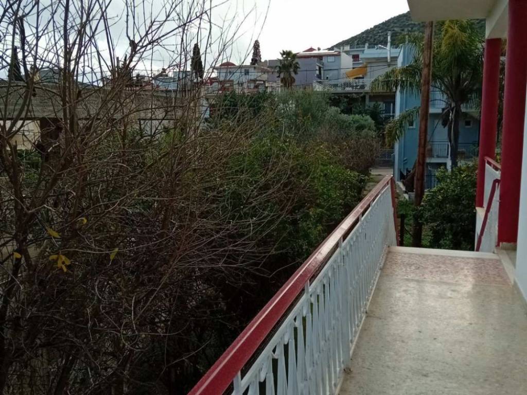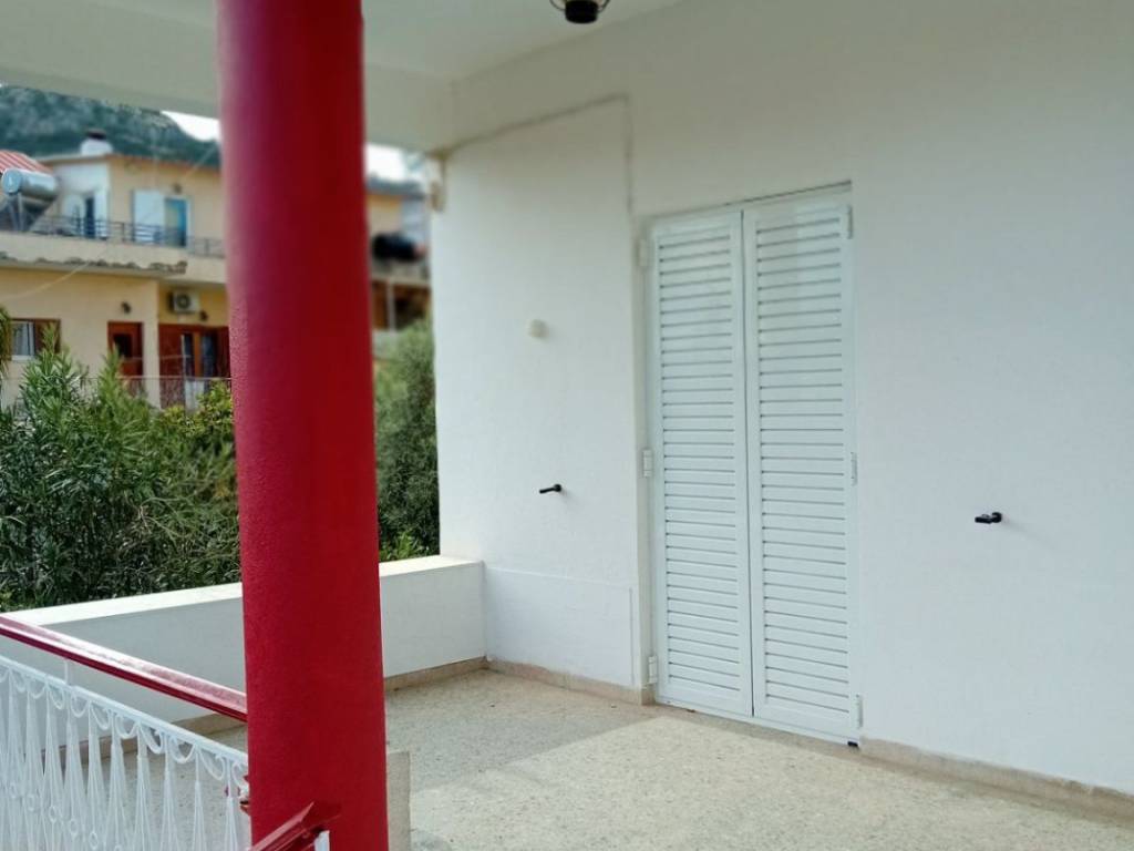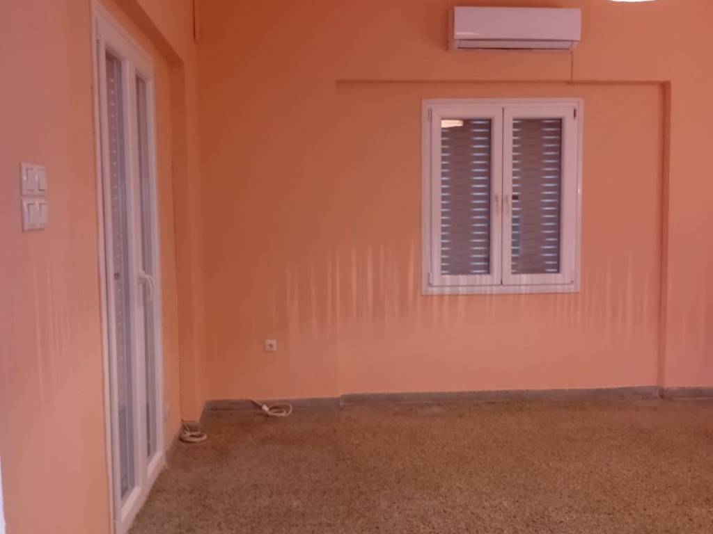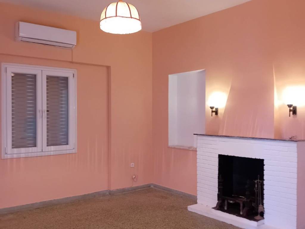 1st floor apartment of a detached house 65 sq.m., with a small garden. On the pedestrian street Minoos 28, which is perpendicular to the main street Minoos and is 160 meters from the beach (as we go up Minoos just before the fork) on the right is a pedestrian street. It has 2 large spacious rooms (living room and bedroom) with a nice layout. In front it has a nice large veranda and in the back a balcony (from the kitchen). It has a fireplace in the living room and 2 airconditions in the 2 rooms (living room and bedroom), each 12000 btu. It has a solar water heater. It is freshly painted and clean. It is not furnished. The ground floor of the detached house is already rented.