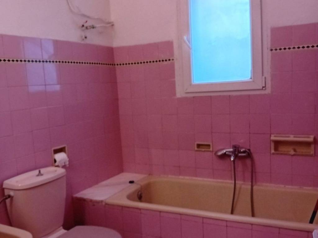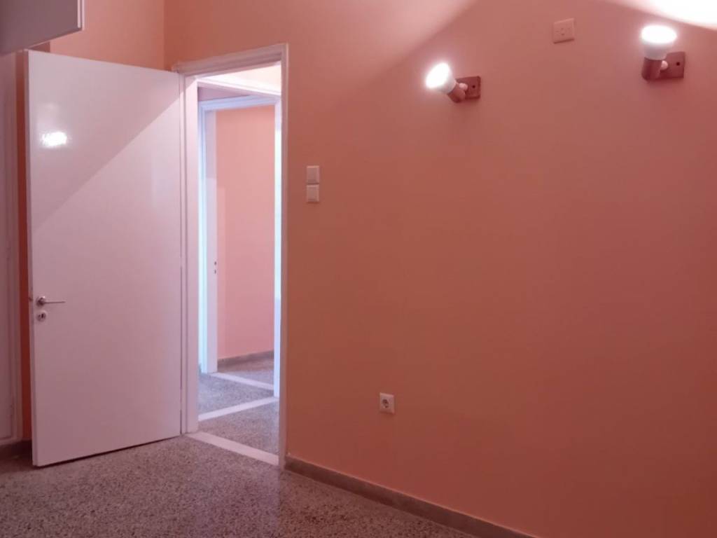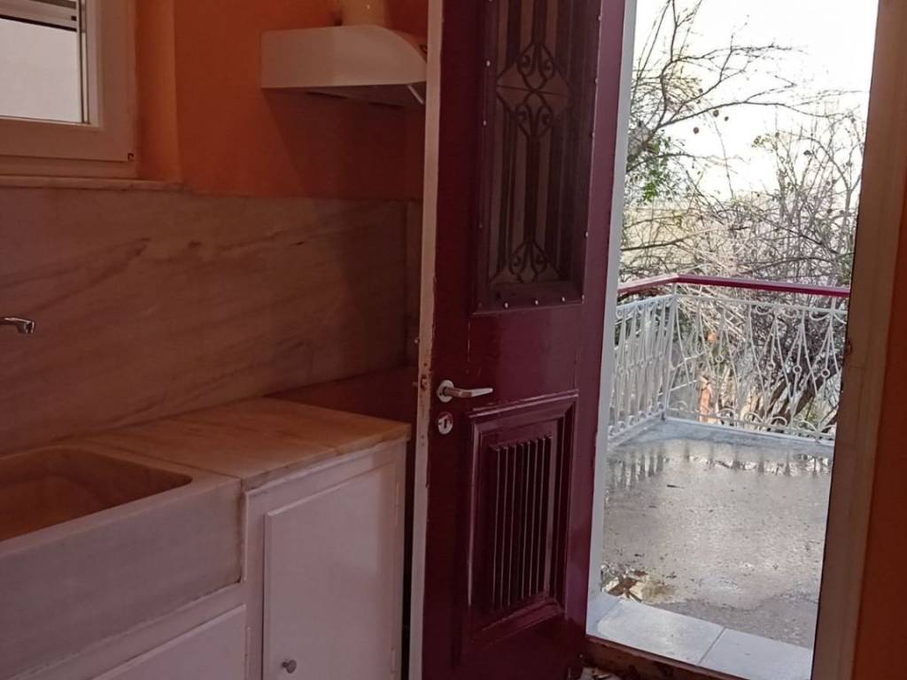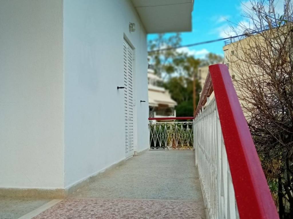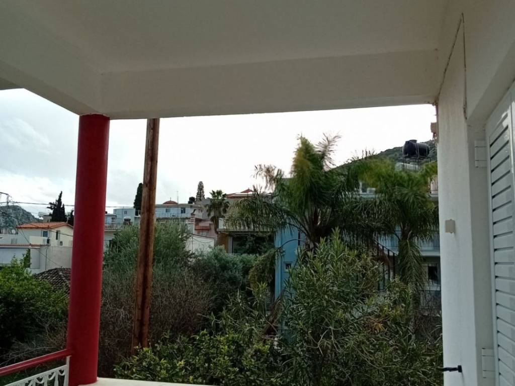 1st floor apartment of a detached house 65 sq.m., with a small garden. On the pedestrian street Minoos 28, which is perpendicular to the main street Minoos and is 160 meters from the beach (as we go up Minoos just before the fork) on the right is a pedestrian street. It has 2 large spacious rooms (living room and bedroom) with a nice layout. In front it has a nice large veranda and in the back a balcony (from the kitchen). It has a fireplace in the living room and 2 airconditions in the 2 rooms (living room and bedroom), each 12000 btu. It has a solar water heater. It is freshly painted and clean. It is not furnished. The ground floor of the detached house is already rented.