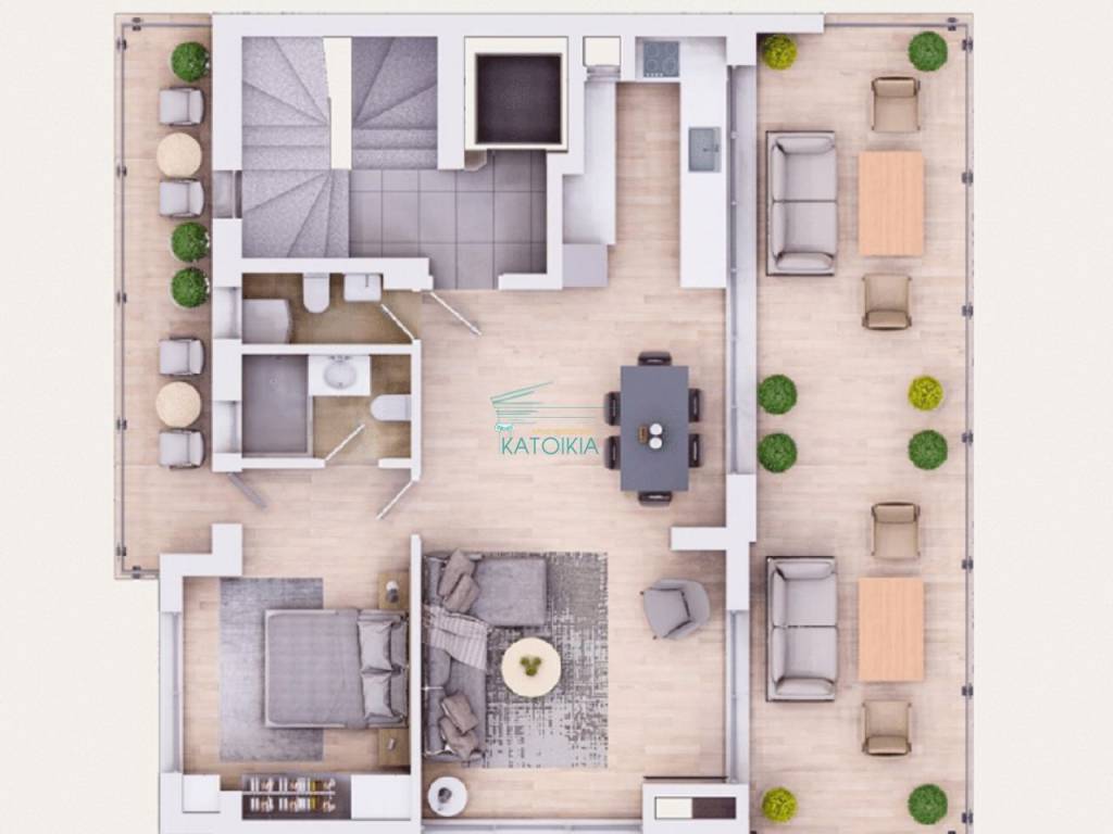 PAGKRATI, Apartment 66 sq.m., painted, 6th floor, luxurious, for investment, at residential area, year of construction 2025, n/a, 1 b/r, living room, bathroom, kitchen, double-sided, front facing, bright, heating autonomous, with energy class A, with n/a joinery, double glass pane, double glazing, internal staircase, elevator, disabled access, security door, veranda 9 sq.m., pets allowed, closed garage, price 380.000€, code 55205