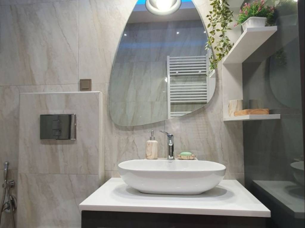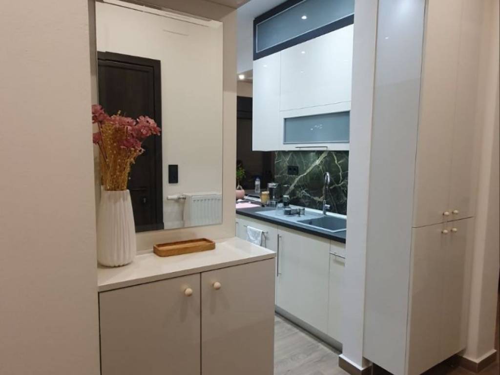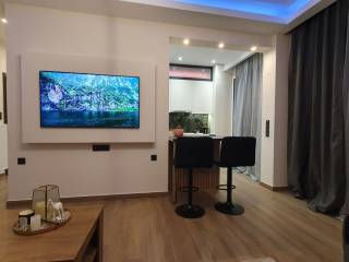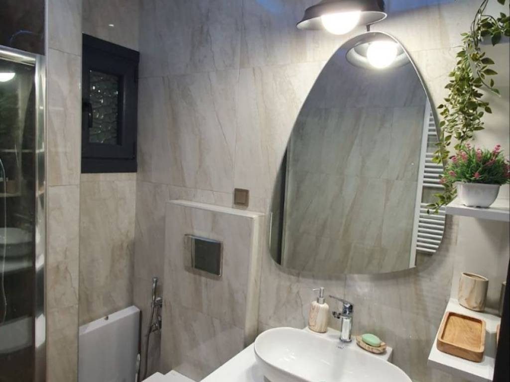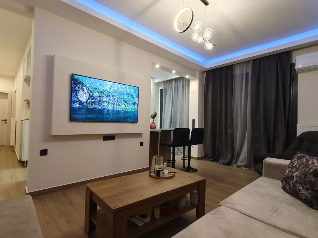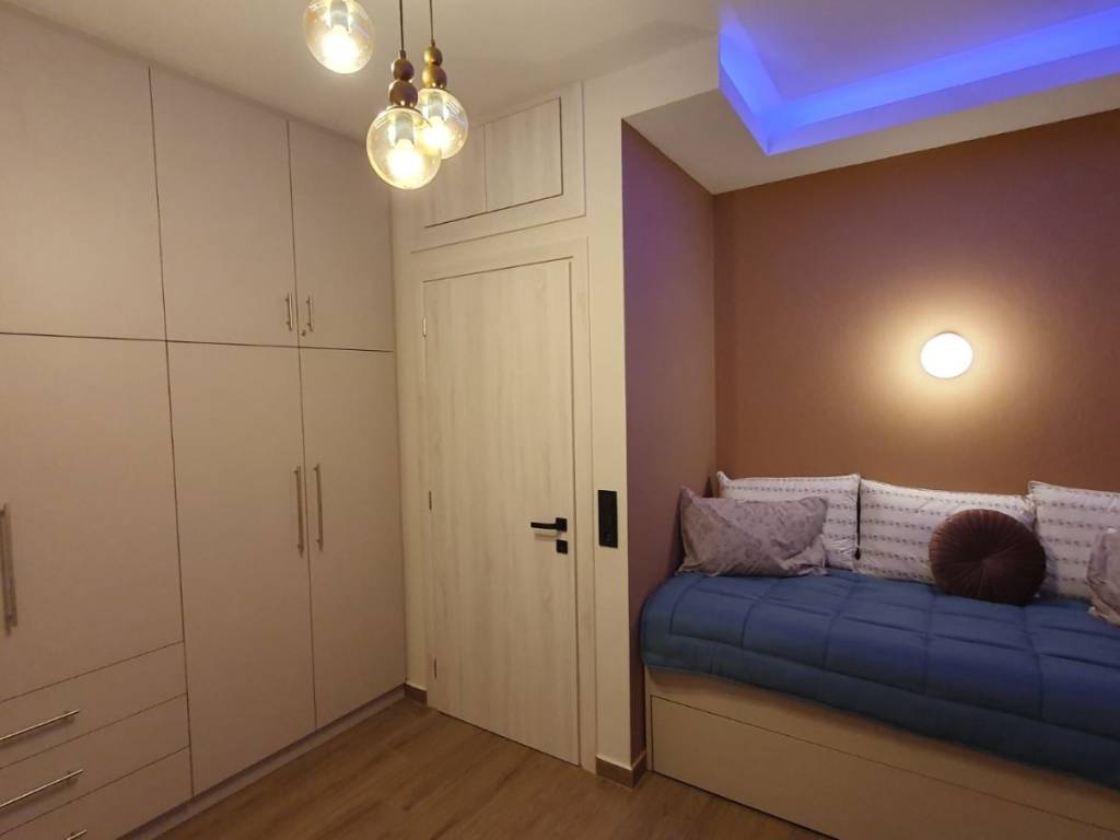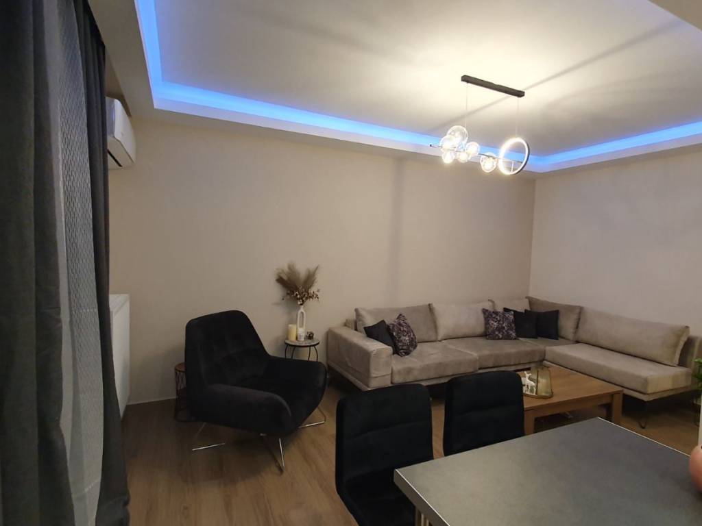Fully renovated and luxurious 85 sq.m. apartment available for rent on the 2nd floor with elevator, located in the center of Drama (Agia Varvara area), overlooking the Agia Varvara Park. The property was completely renovated in 2024 with modern design, high-quality materials, and a smart home system. The apartment is fully furnished with brand-new, high-quality furniture and equipped with new electrical appliances, including a refrigerator, oven, cooktop, microwave, kettle, television, as well as a washing machine and dryer. It consists of a spacious living room, kitchen, two bedrooms, and a bathroom with a shower. The master bedroom features a double bed, while the second bedroom includes a practical bunk-style bed with a pull-out lower bed. There is also a loft storage space providing additional storage capacity. The property features a smart home system that controls lighting, ambient lighting, shutters, and the thermostat, offering comfort and modern functionality. It also includes electric shutters, electric awnings, and modern LED lighting. Heating is autonomous with natural gas, while air conditioning units are installed in the living room and both bedrooms. The apartment also includes a solar water heater for energy efficiency. The windows are energy-efficient with triple glazing, providing excellent thermal and sound insulation. The flooring is made of durable granite tiles, and the entrance door is reinforced for enhanced security. The building includes an elevator and accessibility via a ramp for people with disabilities. There is also a balcony with an open view of Agia Varvara Park, while public parking is available in the surrounding area. An ideal choice for those seeking a modern, comfortable, and fully equipped high-standard apartment in the city center.