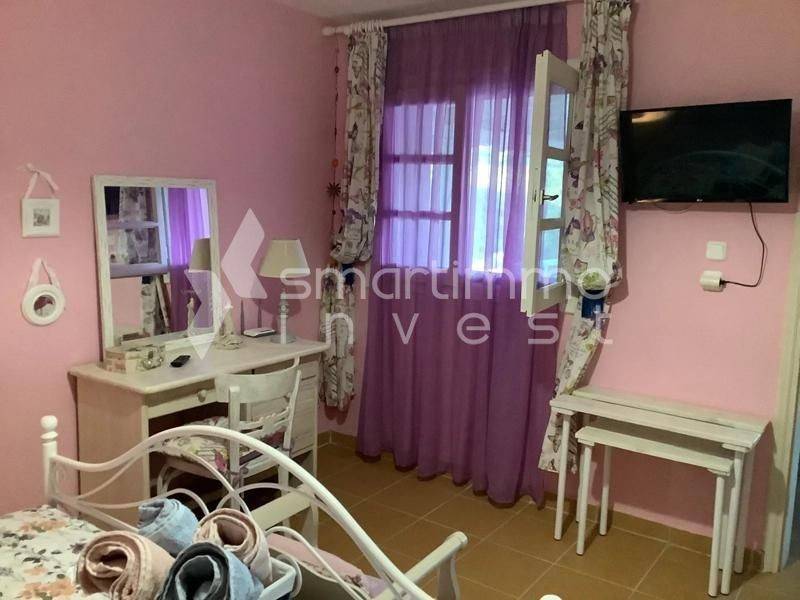 An exceptional detached house of 130 sqm is offered for sale on the island of Alonissos, in the sought-after area of Paliochorafina, set on a spacious 1,000 sqm plot and fully furnished with electrical appliances, offering outstanding views and excellent investment potential. The main level consists of a bright living room, a functional kitchen, three comfortable bedrooms and two bathrooms, while the generous terraces provide unobstructed views and ideal outdoor living spaces. On the lower level, there is an independent 40 sqm apartment with its own kitchen and bathroom, currently operating successfully as an Airbnb and generating steady rental income. The property features a fireplace, air conditioning, solar water heater, 15 sqm storage room, large private parking area and a beautifully landscaped garden. Built in 1997 and renovated, it has an east-facing orientation and energy class E. Located only 500 meters from the port and approximately ten minutes from Alonissos town, it combines tranquility, panoramic views and easy access to local amenities. Immediately available, it is an ideal choice for a holiday home or a high-demand investment property.