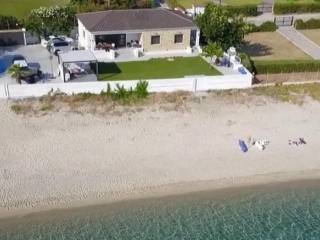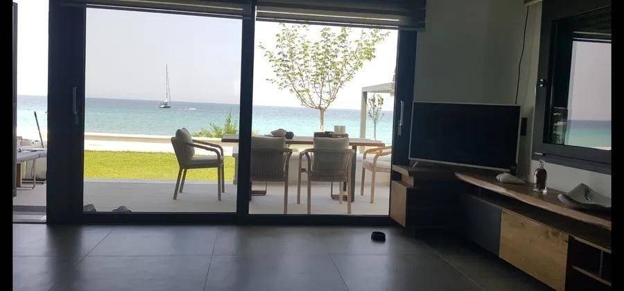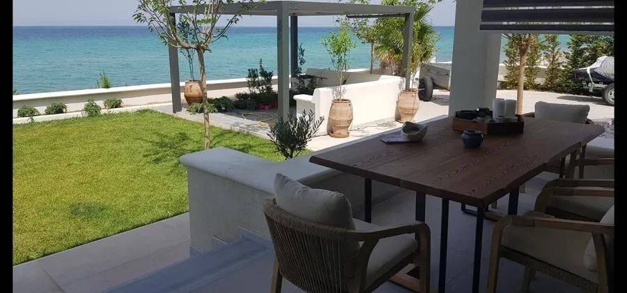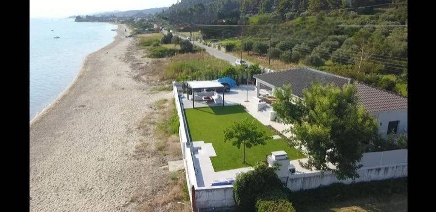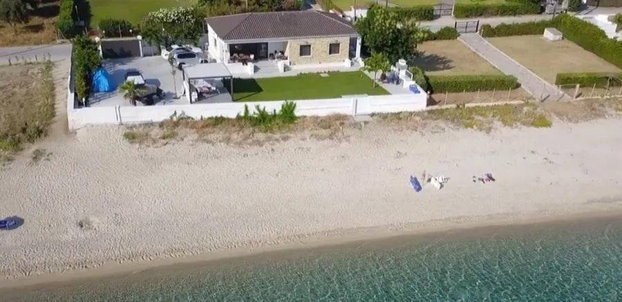 Luxury villa 115 sq.m. for sale in Kryopigi, Chalkidiki, right on the waves, on one of the most beautiful sandy beaches, between Polychrono and Kryopigi. The residence is situated on an 800 sq.m. plot and consists of four bedrooms, living room, dining area, kitchen, two bathrooms, and storage room. It is fully furnished and equipped, with modern amenities for comfortable living. It features four parking spaces and a boat launching ramp directly into the sea from the garden. Additionally, it includes an alarm system, air conditioning, three-phase electrical power, security door, and a large veranda with unlimited view of the Aegean Sea. The garden surrounds the property and offers tranquility and seclusion, in an enchanting destination ideal for private residence or luxury tourist use. Price: 2.450.000€