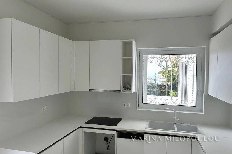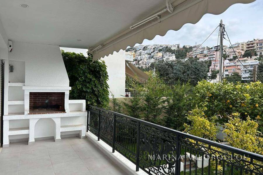 VOULA-Panorama (low zone), a renovated maisonette, groundfloor-1st-2nd, totally 200m, with garden and large verandas in all areas. Southeast orientation. -1st floor, 100 sqm, open plan reception-dining area, modern kitchen with fireplace, 1 bedroom and 1 wc. -2nd floor, 40 sqm, 1 bedroom and 1 bathroom - Ground floor, 60 sqm, 1 bedroom, 1 utility room (palyroom) with large wardrobe and 1 bathroom It features a security door, autonomous oil heating per level, fireplace, 4 A/Cs, large tile on the floor, solar water heater, security alarm, storage room, elevator, 1 covered parking space (piloti). Maintenance expenses 200€ It is part of a 3-storey building, 600m from a deli local market, 2.2km from the center of Voula, 2.9 km from Voula beach, 7 km from Asteras marina