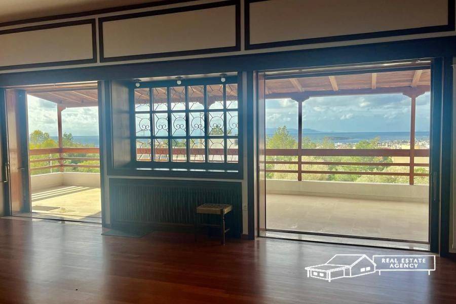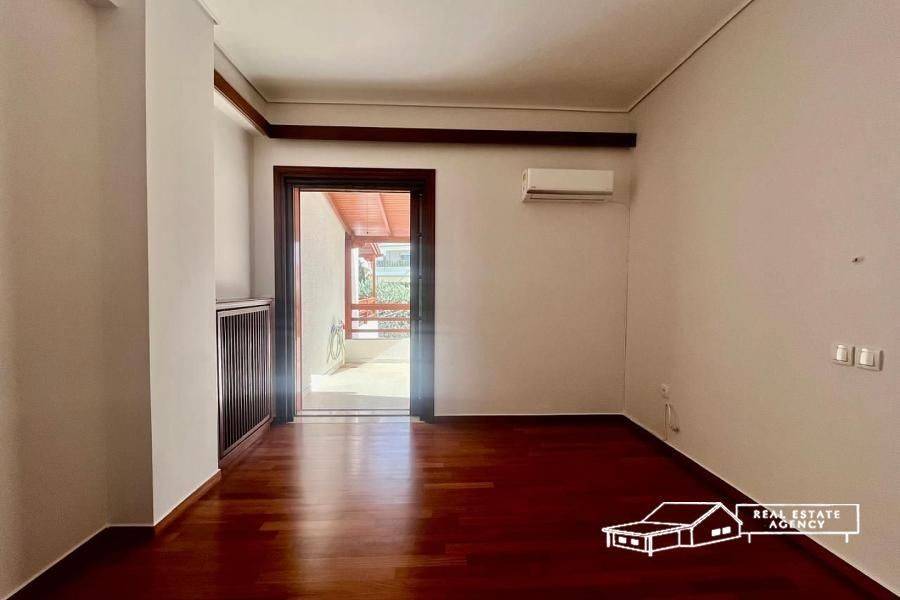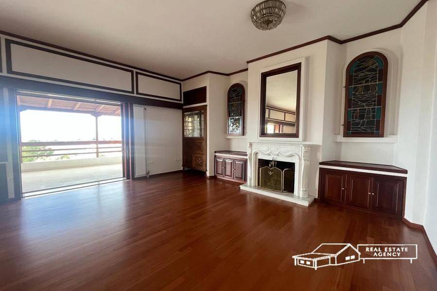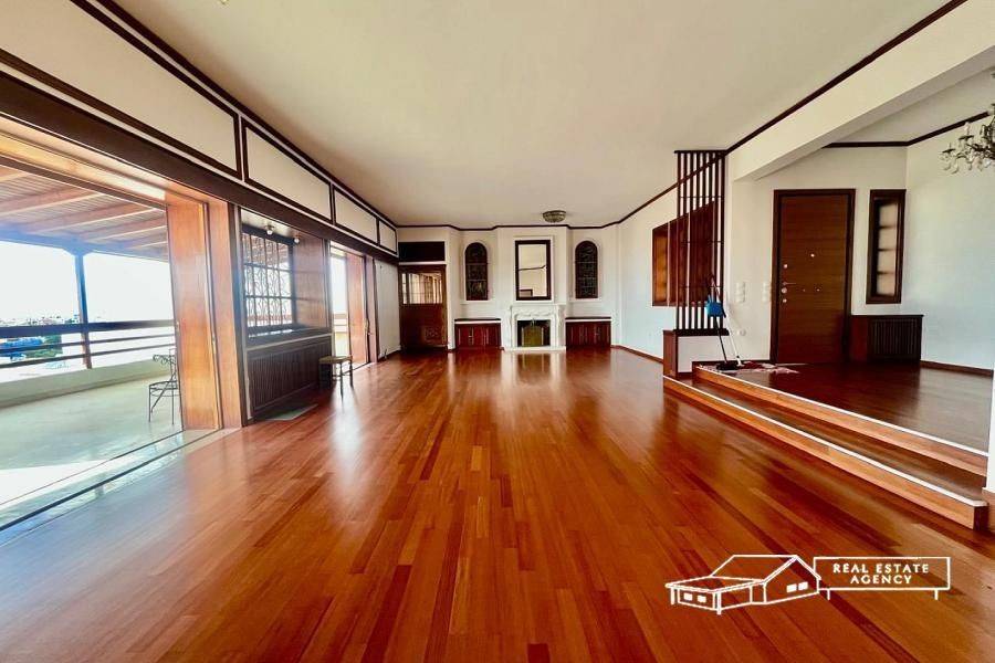 Voula, in the Exochi area, a luxurious, 1st floor apartment, 175 sq m, with unobstructed and panoramic sea views is for rent. The apartment impresses with its imposing 65 sq m reception area, with a fireplace, warm wooden panels and a sense of discreet luxury. It has a large, fully functional kitchen with a living room, two spacious bedrooms and two elegant bathrooms. Additionally, it includes an independent laundry room. The large 33 sq m terrace, in front of the living room, offers unique moments of relaxation with a view of the endless blue. It has Iroco wooden floors, autonomous heating and 3 air conditioners. The property is located on a quiet street, just a 5-minute drive from the sea and the shopping center of Voula, ideally combining privacy, comfort and quality of life. Contact number: +30 6932 746491, website: www.merryland.com.gr, Email: sotiropoulou@merryland.com.gr, Id: 16515