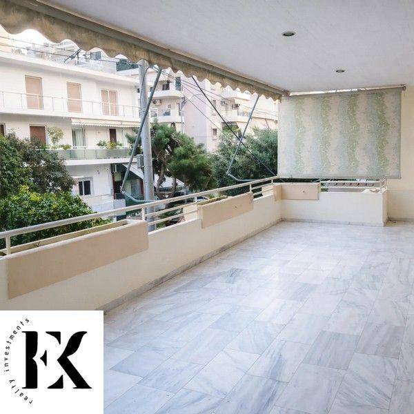 Nea Smyrni, 130sqm floor apartment, bright, includes a single living room, dining room and kitchen in an open layout with fireplace, 3 bedrooms, 2 bathrooms, storage room and balconies with awnings along the entire length of the apartment. The property also has autonomous oil heating and air conditioning (A/C), aluminum frames, security door, installed alarm, floors: marble, elevator and parking space in the basement with remote-controlled security garage door. It is located in an excellent and quiet area of Nea Smyrni (Leontios area). The property combines the tranquility of a residential neighborhood with direct access to transportation (Tram, buses and Metro connection). The address is approximate. price: 1300 euros