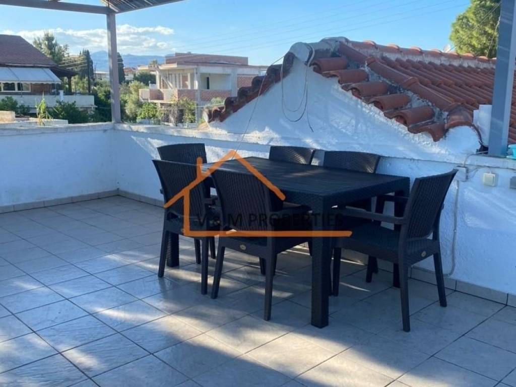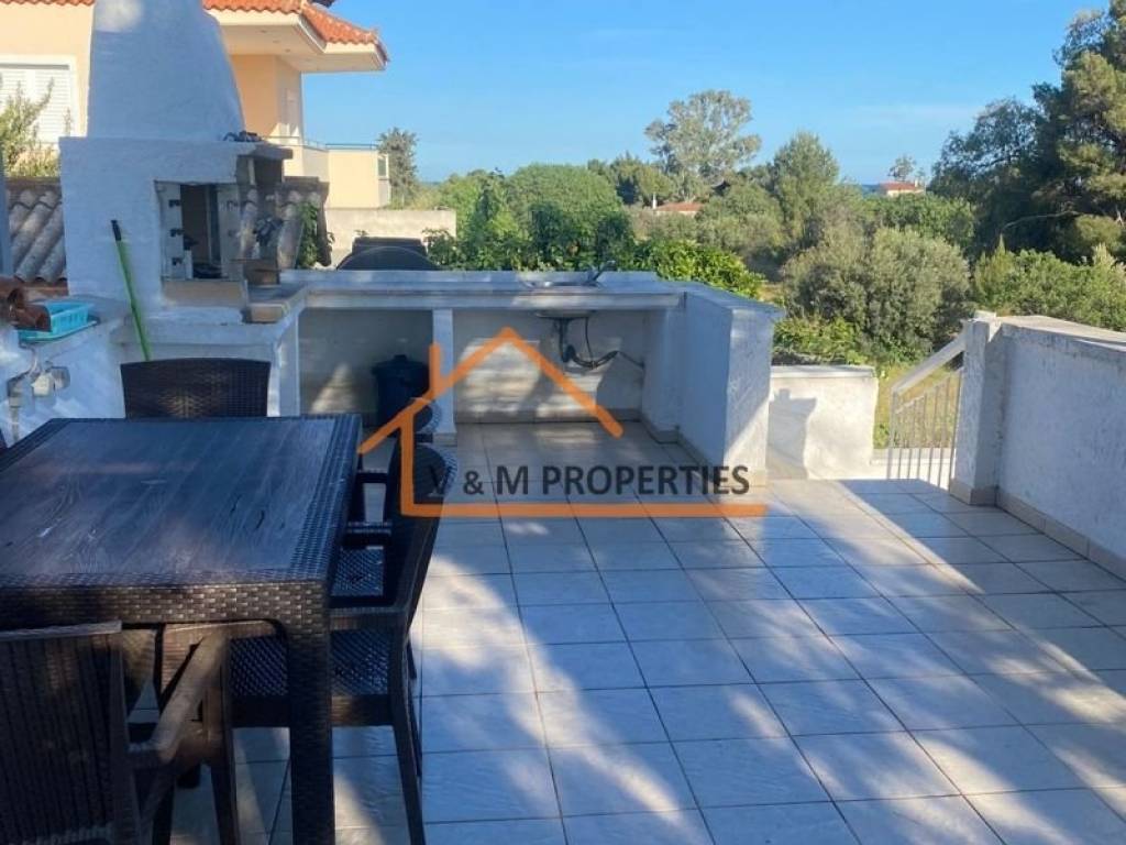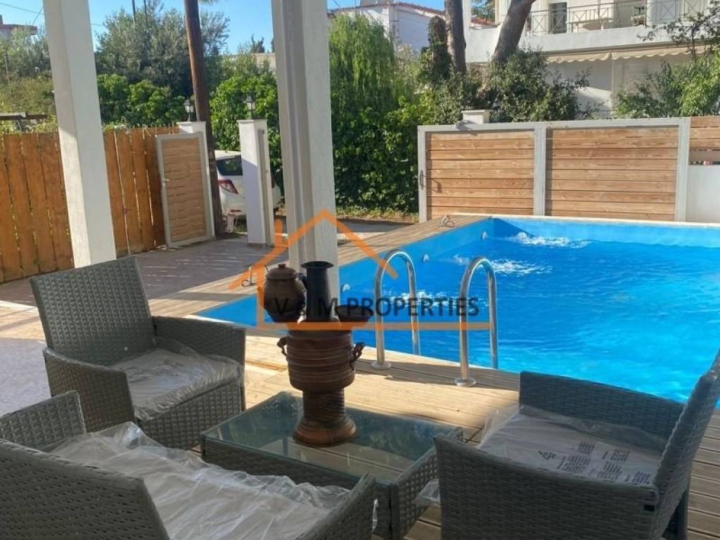 Artemida (Loutsa) — Renovated, fully independent detached house with private swimming pool, featuring 4 bedrooms, a spacious living room, a fully equipped kitchen and a bathroom. The property is offered fully furnished, with electrical appliances and air conditioning in all areas. It includes a parking space, a large storage area, a private garden and a rooftop with BBQ facilities. Located just 500 m by car from the beach.