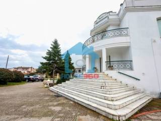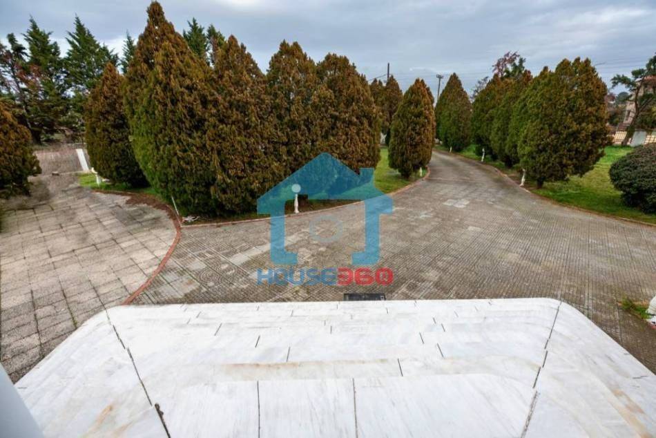 Thermi, Neo Rysio: In Neo Rysio, in a strategic location with direct access to Thessaloniki, "Macedonia" Airport and Halkidiki, a neoclassical villa with a total area of 450 sq.m. is available for sale. on a private plot of 4,000 sq.m., with an indoor pool and a second independent residence. The property consists of a main villa of 300 sq.m. developed on three levels and from an independent maisonette of 150 sq.m., also on three levels, with a separate entrance. The architecture of the villa is characterized by an impressive double-height living room with an interior patio that extends to the ceiling, two fireplaces and large open spaces with abundant natural light. On the first level of the residence there is a landscaped recreation area that includes an indoor heated pool, living room with fireplace, bar, additional rooms and WC. The second residence of 150 sq.m. it has full autonomy and can be used as a guest house, staff residence or independent holding. The surrounding area of 4,000 sq.m. offers privacy, landscaped tree-lined access and the possibility of an outdoor pool, tennis court or additional layouts. The property is in need of maintenance and renewal, enabling the new owner to adapt it to modern requirements while maintaining its special architectural character. Ideal for main residence, holiday use or short-term rental investment, as well as for the Golden Visa program. Price €801,000 | Property Code: #ΔΝ859