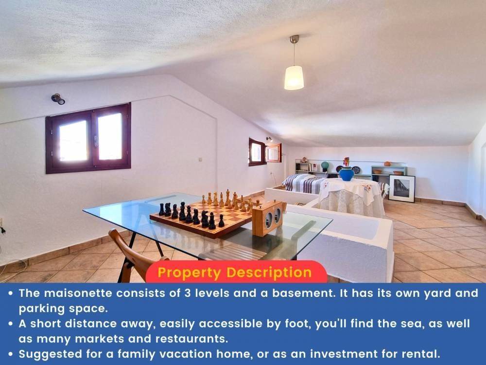 Investment proposal: The maisonette adjoins an identical residence which is also for sale. There is the possibility of purchasing both, either for owner-occupation or for exploitation. With minor interventions, two independent small apartments can be created in the semi-basements, which will show high demand due to their location, as they are within the settlement and very close to the sea. Overall, four independent residences can be created.