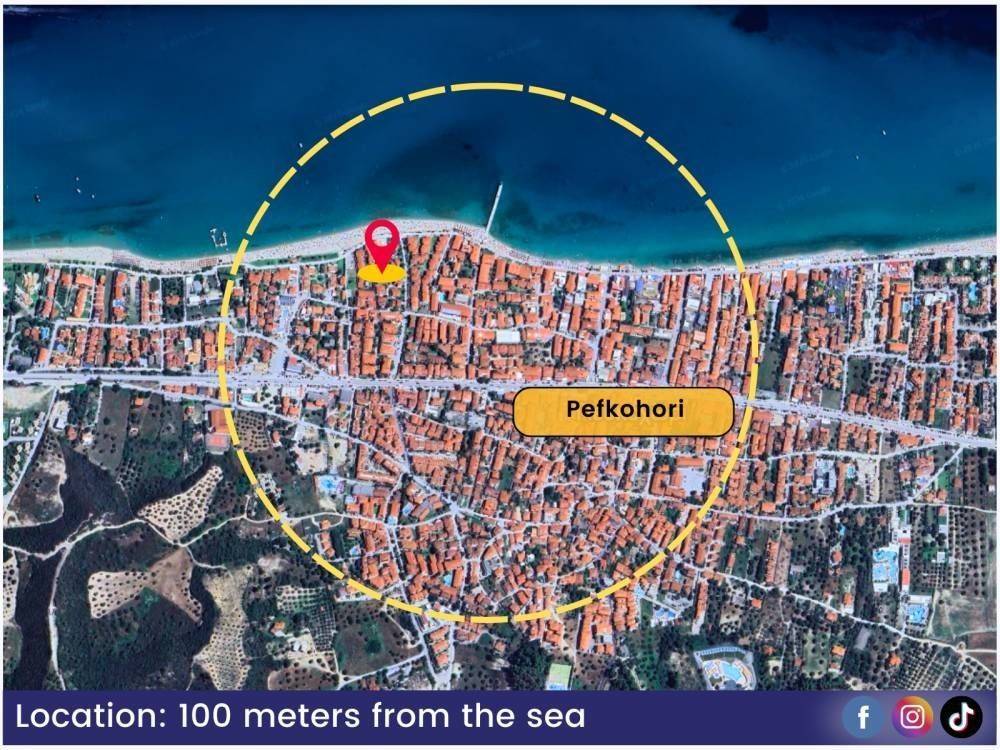 Location: It is located within Pefkochori, at a very short distance from the sea, the market, dining areas, and tourist infrastructure. The area is close to the village center, without noise or heavy traffic. It is a particularly attractive option for a holiday home or an investment with high returns. The address shown on the map is indicative and is close to the actual location of the property.