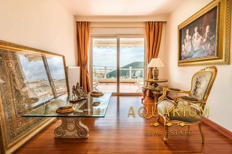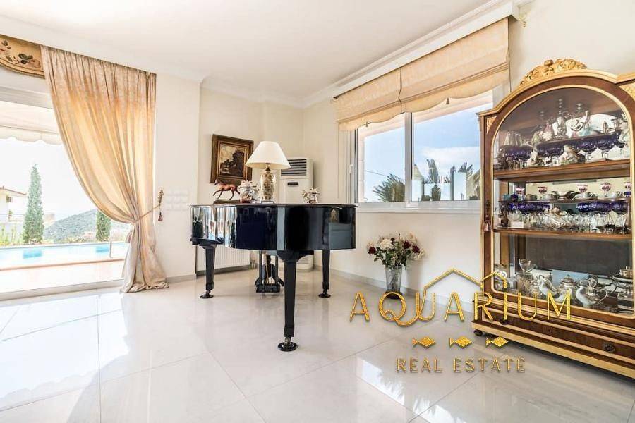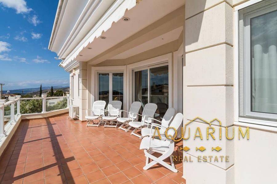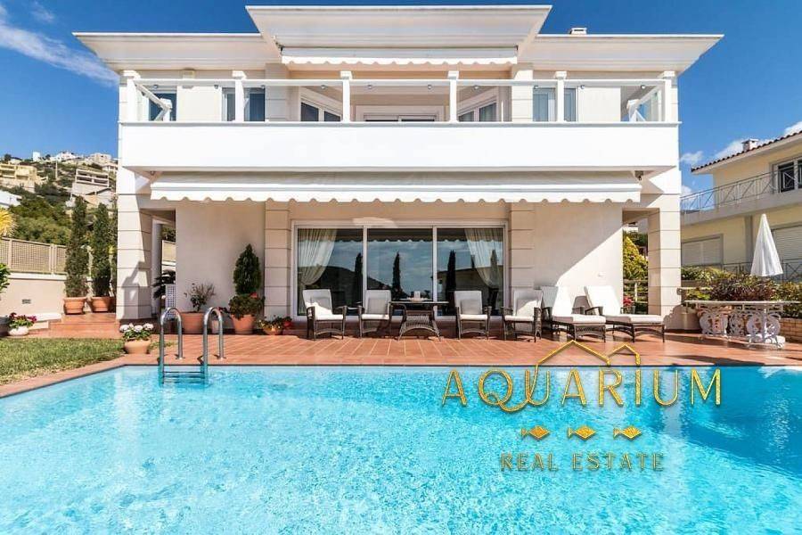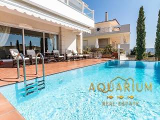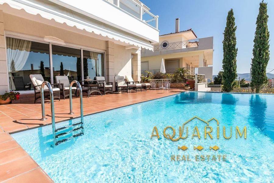 SARONIDA - 3 levels (semi-basement - ground floor - 1st), 386m2 villa, built 2006-2009 on a plot of 515 m2 bright, 3 bedrooms (1 master), 2 bathrooms, 2 wc, autonomous heating on each floor, air conditioning, fireplace, security door, awnings, unrestricted mountain - forest - sea view, open and covered parking, storage room, swimming pool, Energy class C. Main rooms: 2 living rooms, kitchen, 3 bedrooms, 2 bathrooms, 2 WC Auxiliary spaces: 3 parking spaces (1 closed ground floor and 2 outdoor), storage room. Advantages: frontage, bright, panoramic view, 800 meters from the sea. Additional features: - individual heating with Buderus oil boiler, fireplace - playroom, garden, 32m2 swimming pool with 2.80m depth, balconies, awnings, barbecue - marble floors - wood - granite, aluminum frames, double windows, screens, security door, alarm - fitted wardrobes, night electricity, air condition, boiler, jacuzzi.
