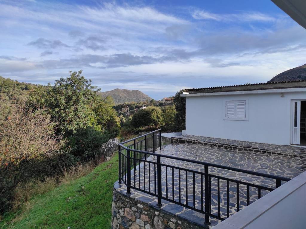 One of the most picturesque areas of Crete. Ideal for permanent residence or holiday home. Peace, nature and very friendly for pets. Chonos Mylopotamos. In an amazing location, suitable for permanent installation. Ideal for mountain winter and summer holidays. Distance from the sea 15' and from Anogia, and the peak of Psiloritis 15'. It has a garden, paved courtyard and sliding garage door. It has balconies all around and a terrace. Large storage room. Aluminum frames. Two bedrooms. Fully equipped. It also has a corner fireplace. 3 air conditioners. IDEAL for permanent installation. price negotiable, depending on the use (permanently or for short holidays)