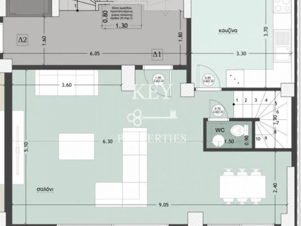 For sale newly built maisonette, 168sq.m.(123,87sq.m. net), on the 8th floor with elevator. It consists of three spacious bedrooms, a bright kitchen with balcony, a large living - dining room which opens to a terrace and two bathrooms. It has individual natural gas heating, a security door, energy-efficient windows, a storage room and parking space. It is situated in a unique location in the heart of the city, next to bus stops, schools and the market.