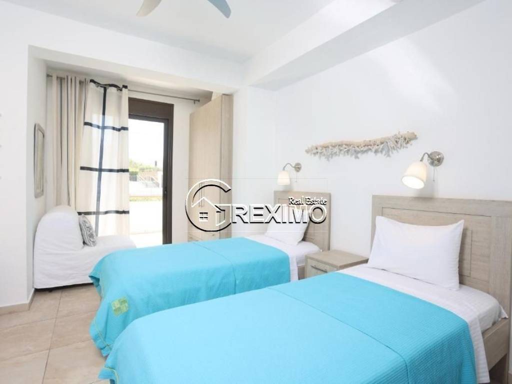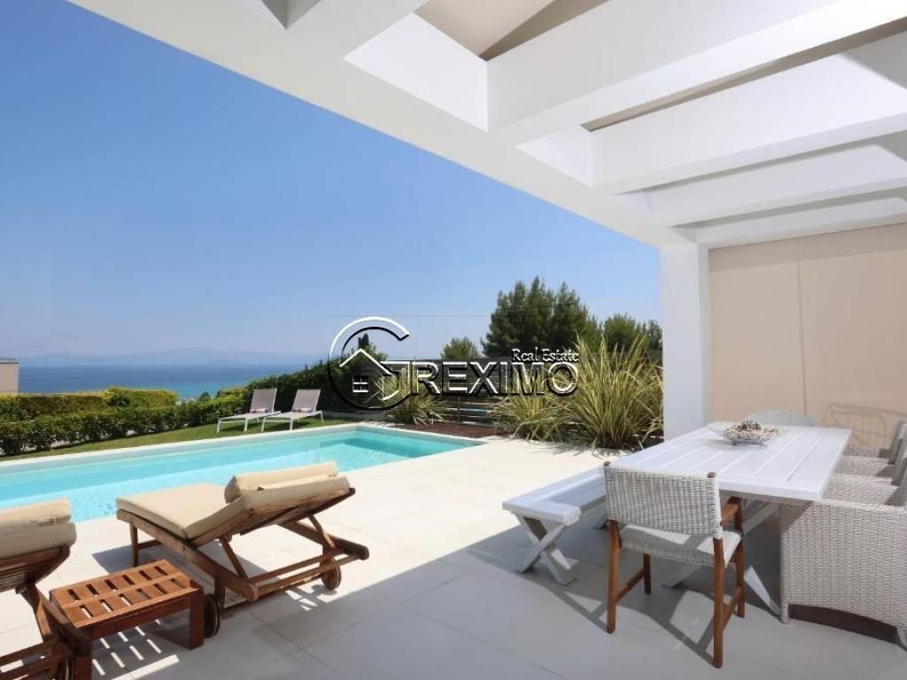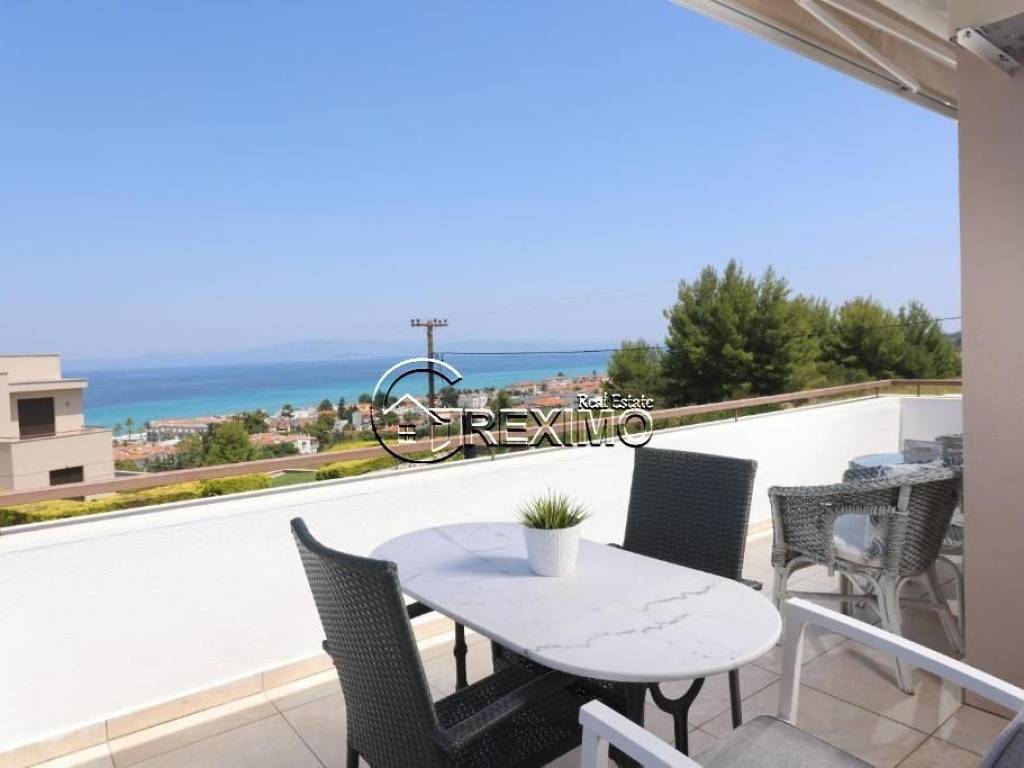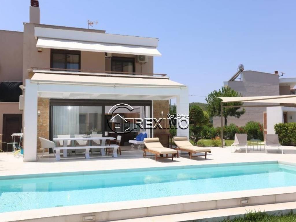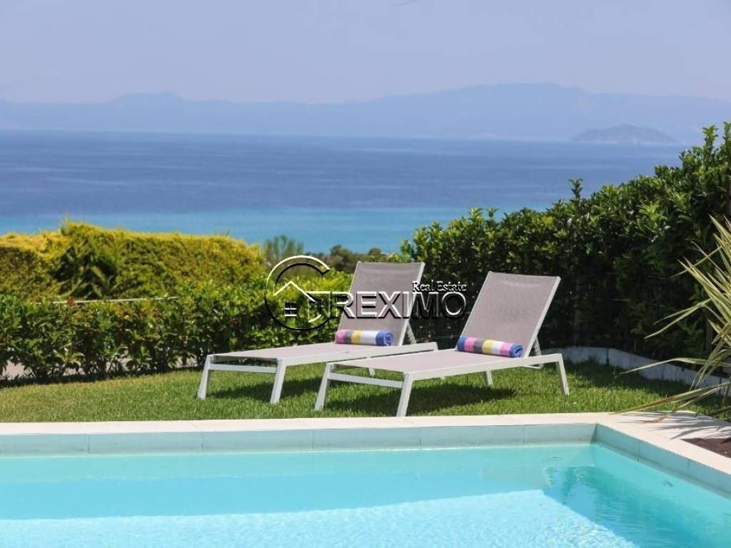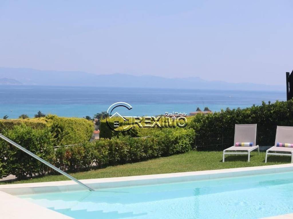 Villa with pool and unobstructed sea view in Hanioti, Halkidiki – an exceptional property combining comfort, elegance, and a prime location. Situated in a quiet and prestigious area, the villa offers a high standard of living and excellent opportunities both for private use and for investment purposes through rental income, in one of the most sought-after resorts in Halkidiki. Layout and interior spaces The property features three spacious bedrooms, two modern bathrooms, and a designer kitchen seamlessly connected to a bright and inviting living area with direct access to the outdoor spaces. The house enjoys impressive panoramic views of the Aegean Sea, highlighting the Mediterranean character of the property and creating a sense of tranquility and privacy. The villa is sold fully furnished and equipped with all necessary electrical appliances, making it completely ready for immediate use. Built in 2008 and maintained in excellent condition, the property stands out for its quality construction and numerous upgrades. Prime location with strong investment value Set on a private plot of 600 sq.m., the villa offers a beautifully landscaped garden and a private swimming pool. The spacious outdoor areas are ideal for family moments and summer gatherings. The location is a key advantage – just 500 meters from the sandy beach of Hanioti and within close proximity to restaurants, shops, and all resort amenities. Investment potential This villa for sale in Halkidiki is an excellent choice for buyers seeking a property in Greece with a pool and sea view. The property offers strong investment potential in one of the most popular areas of the region. Contact us: +30 694 527 5975