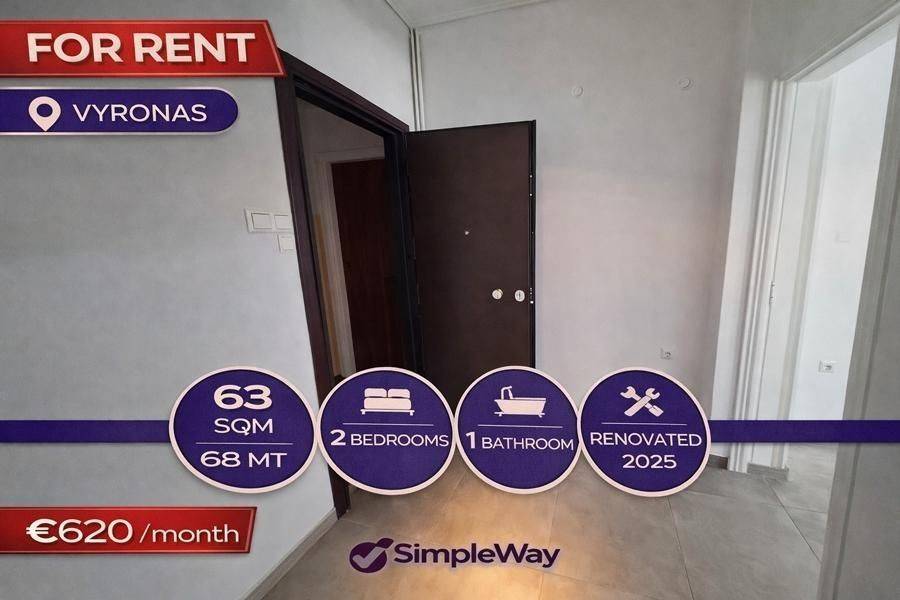 Vyronas - Apartment 68sqm bedrooms 2, levels 1, 1st, year built 1974, renovation year 2025, energy class F, living room, kitchen, bathroom, heating type: central (oil), air condition, corner, elevator, aluminum frames, double glazed windows, door screen, wood & tile floors, secure door, residential zone.