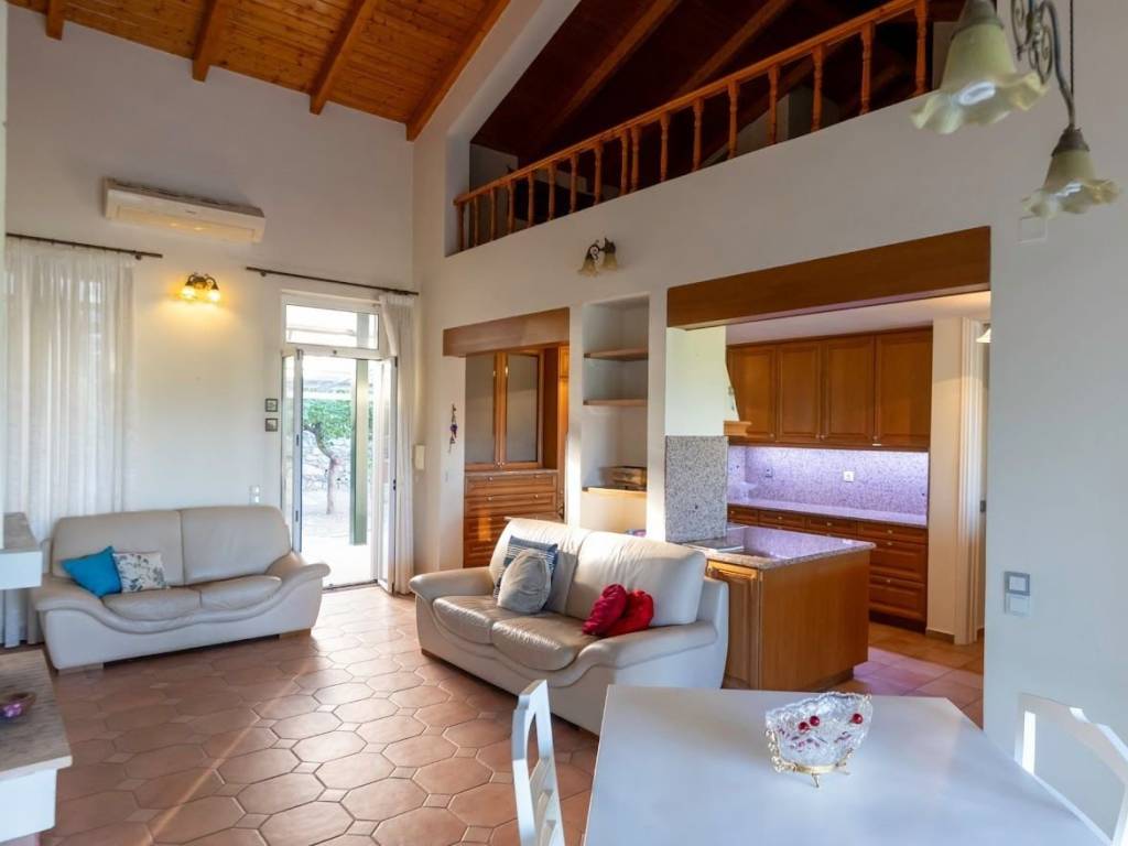 Προς πώληση ιδιόκτητη διόροφη μονοκατοικία (464 τ.μ.) σε άψογη κατάσταση στην Αίπεια, προάστιο της Καλαμάτας, χτισμένη σε περιφραγμένο οικόπεδο 1360 τ.μ. Αποτελείται από 7 ευρύχωρα υπνοδωμάτια με τα μπάνια τους αλλά και γκαρνταρόμπες με εντοιχισμένες ντουλάπες/συρταριέρες, 3 ευρύχωρα σαλόνια με τζάκι, 3 εξοπλισμένες κουζίνες, θέσεις στάθμευσης 5/6, αυτοκινήτων και αποθήκες. Το ακίνητο επωφελείται επίσης από κεντρική θέρμανση ανεξάρτητη για κάθε περιοχή, κλιματισμά, ηλιακό συλλέκτη και θυροτηλέφωνο. Περιβάλλεται από έναν όμορφο κήπο με υπέροχα σκιερά δέντρα και φυτά, μπάρμπεκιου, πέτρινο φούρνο και πισίνα. Βρίσκεται σε μικρή απόσταση με το αυτοκίνητο από το κέντρο της πόλης της Καλαμάτας, τον εμπορικό και ψυχαγωγικό χώρο, την παραλία, τις μαρίνες, το αεροδρόμιο, το νοσοκομείο και οποιεσδήποτε άλλες ανέσεις και εύκολη πρόσβαση σε σημαντικούς τοπικούς αρχαιολογικούς χώρους. Ιδανικό για πολυμελή οικογένεια με παιδιά ή για κοινόχρηστο κατάλυμα. Substantial freehold detached property (464sq. mts) in immaculate condition located in Aipeia, a suburb of Kalamata, one of the most beautiful seaside cities of Southern Greece, built in a secured plot of land of 1360 sq. mts. It consists of 7 spacious fully equipped bedrooms with their bathrooms, dressing rooms with newly fitted wardrobes, 3 spacious living rooms with fire places, 3 equipped kitchens, 5/6 parking spaces, conservatory, playroom and ample storages. The property also benefits from central heating independent for each area, air-conditioning, solar panels and intercom. It is surrounded by an attractive garden with lovely shady trees and plants, BBQ, stone oven and pool. It is situated within a short drive from the Centre of Kalamata town, shopping and recreational area, the beach, marinas, airport, hospital and any other amenities, and easy reach to important local Archaeological sites. Ideal for a large family with children or for shared accommodation.