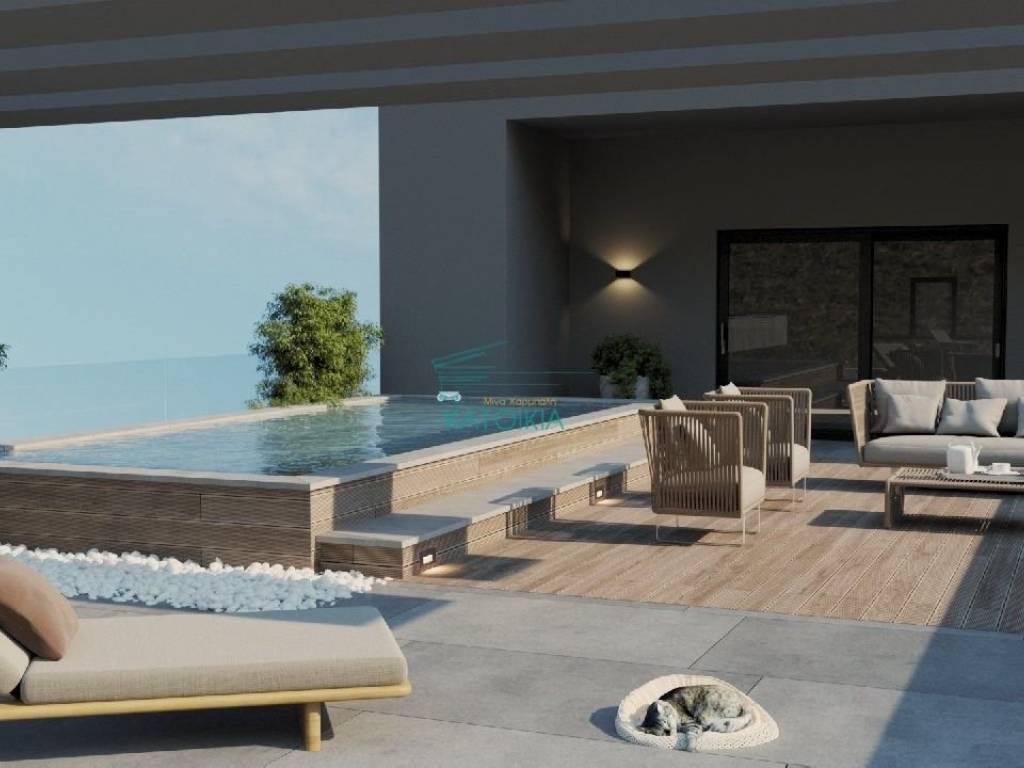 AGIA PARASKEYI, Maisonette 191 sq.m., painted, 2 levels, 5th floor, penthouse, luxurious, for investment, at residential area, year of construction 2024, n/a, with view panoramic, 4 b/r, 2 master b/r, 2 living rooms, fireplace, 3 bathrooms, 1 WC, kitchen, office, double-sided, front facing, bright, heating autonomous, solar panel, natural gas, air condition, floor heating, with energy class A+, with floor type n/a, with n/a joinery, double glass pane, double glazing, pest net, internal staircase, elevator, disabled access, door tv, security door, alarm, satellite dish, veranda, terrace, attic, pets allowed, swimming pool, distance from sea 15.000 m., storage room, closed garage, price 950.000€, code 52550